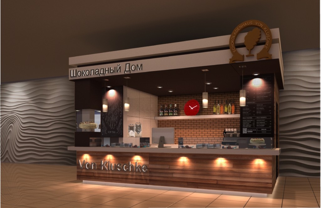 Новый бутик шоколадного дома Von Kluschke площадью болем 100 кв.м (вместе с зоной посадки) расположился на втором этаже торгово-развлекательного центра. Он функционирует как в формате магазина, где можно купить готовые сладости ручной работы либо заказать эксклюзивные кондитерские изделия, так и в формате кафе, в котором можно продегустировать представленную продукцию.