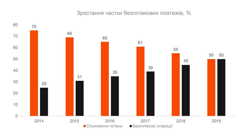Причем для оплат товаров и услуг украинцы все чаще выбирают бесконтактные платежи. Если в 2014 году на них приходилось всего 25%, то сегодня — 50%.