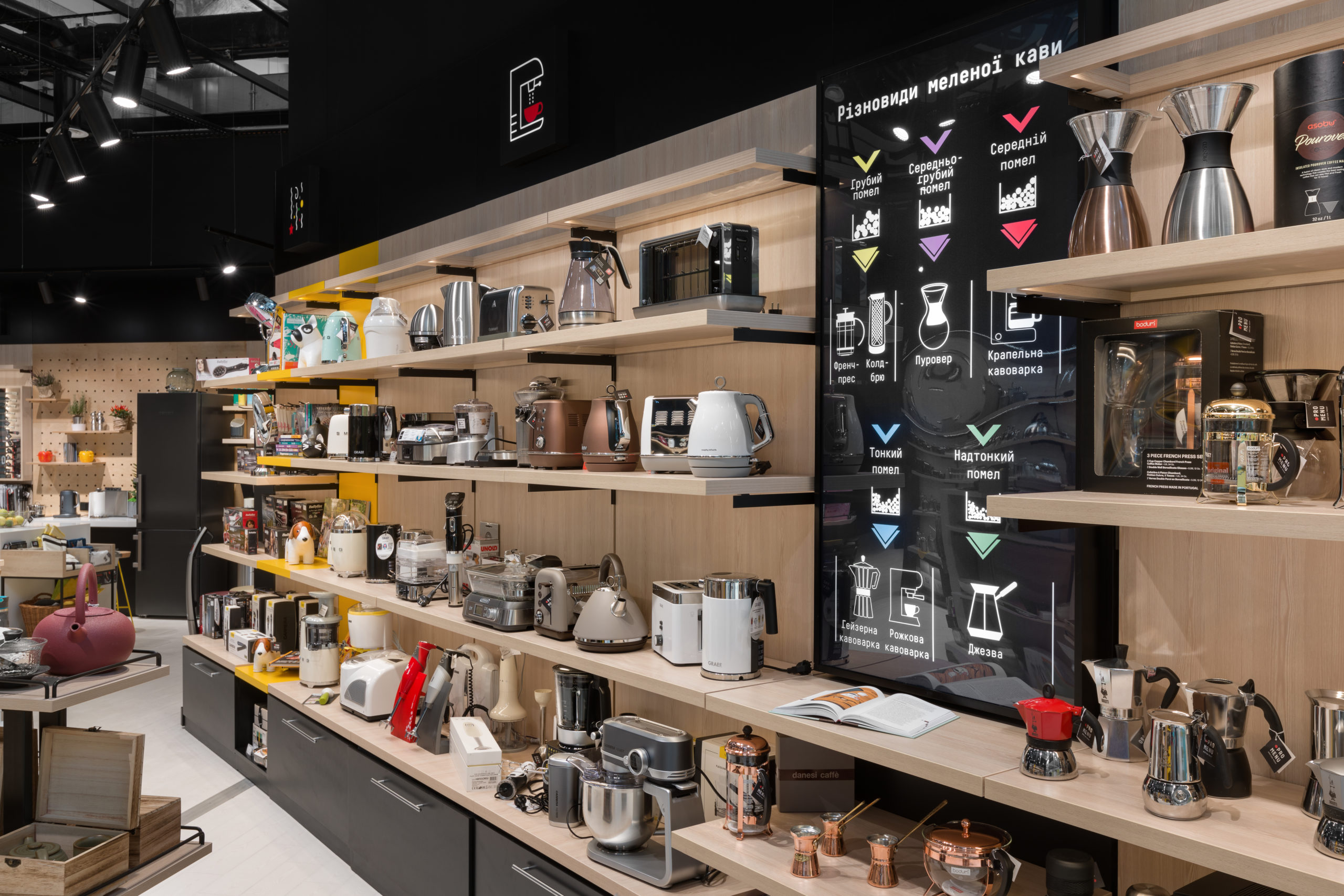 - Візуальний мерчандайзинг, обладнання та вітрини;