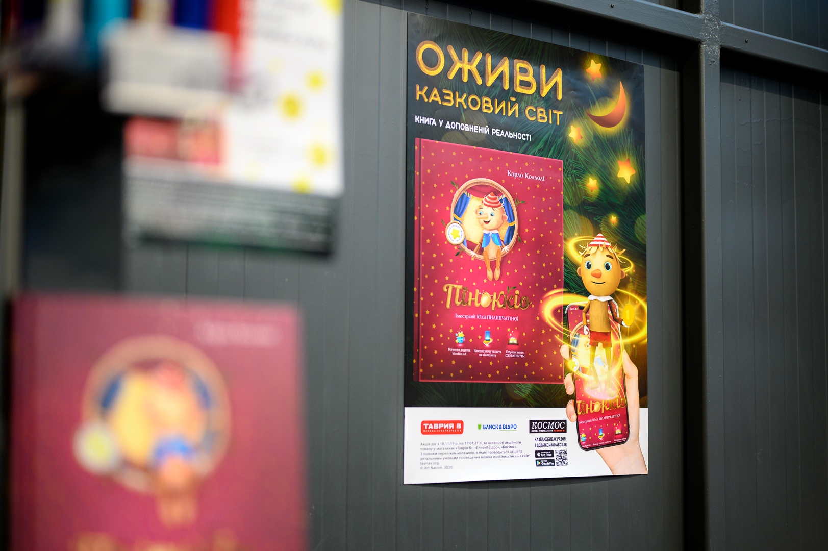 С 16 ноября 2020 г. по 20 января 2021 г. в магазинах и торговых центрах “ТАВРИЯ В”, “БЛЕСК&ВЕДРО”, “КОСМОС”, а также в интернет-магазине tavriav.ua проходит инновационная акция лояльности с продажей книги “Пиноккио” с дополненной реальностью.