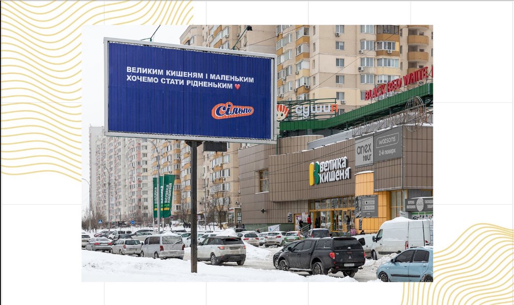 Вместо валентинок и билбордов с сердечками, “Сiльпо” запустил рекламную кампанию, в которой признался в любви другим продуктовым сетям. Так, возле украинских магазинов появились борды со признаниями: “Варус, ти даєш нам парус”, “Білла, забути тебе несила”, “Великим кишеням і маленьким хочемо стати рідненьким”, “АТБ, ми любимо тебе”, “Еко, наша любов недалеко”.