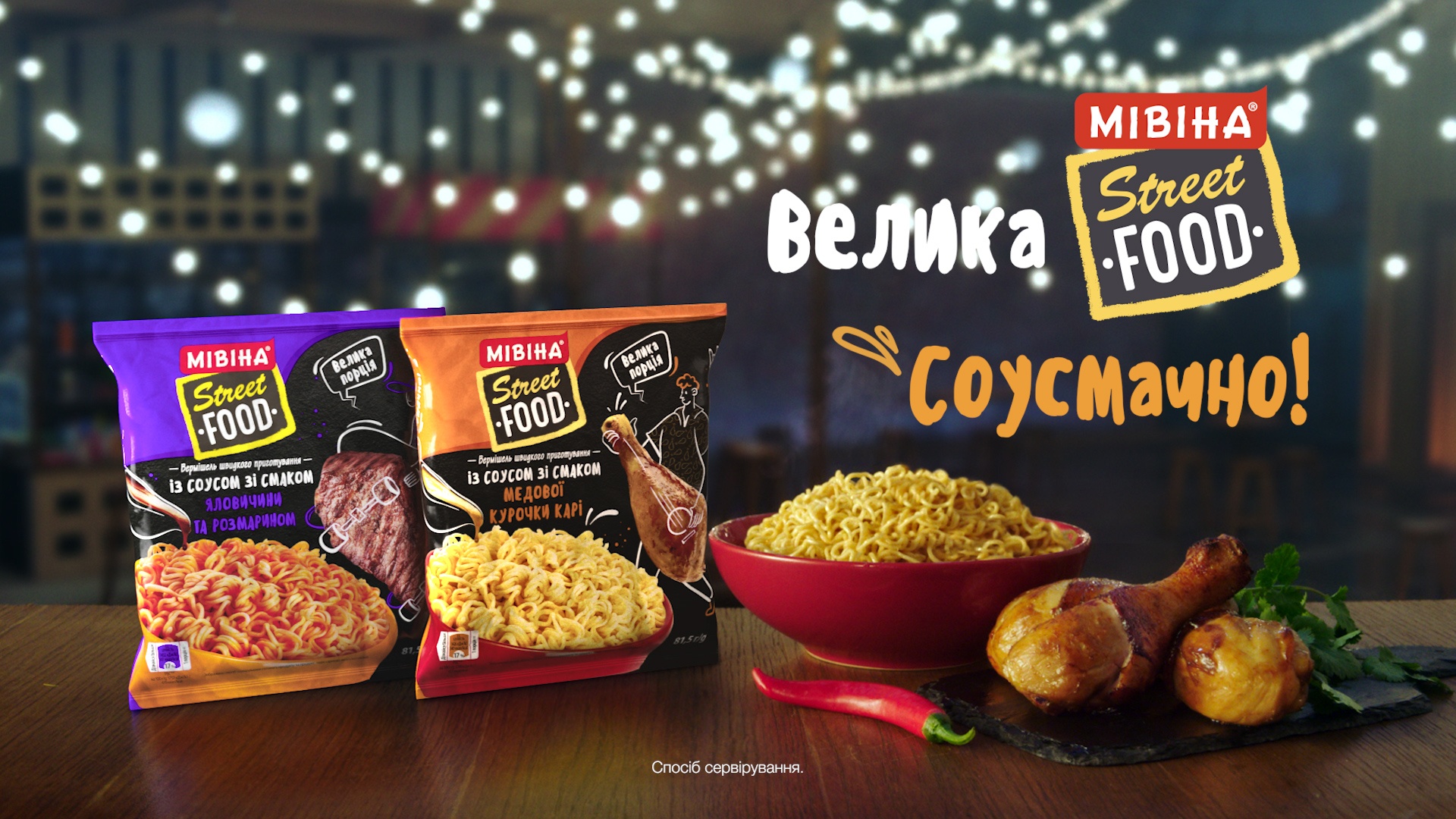 У рекламному ролику «Мівіни® Street Food» усе як на топових ринках вуличної їжі. Щоб підкреслити розмір великої пачки, за нею сховали цілий фуд-трак, а в іншому ролику в стакан вмістили азійський фуд-маркет. Ця та інша вулично-кулінарна магія – у свіжих роликах від Nestlе та McCann Kyiv.