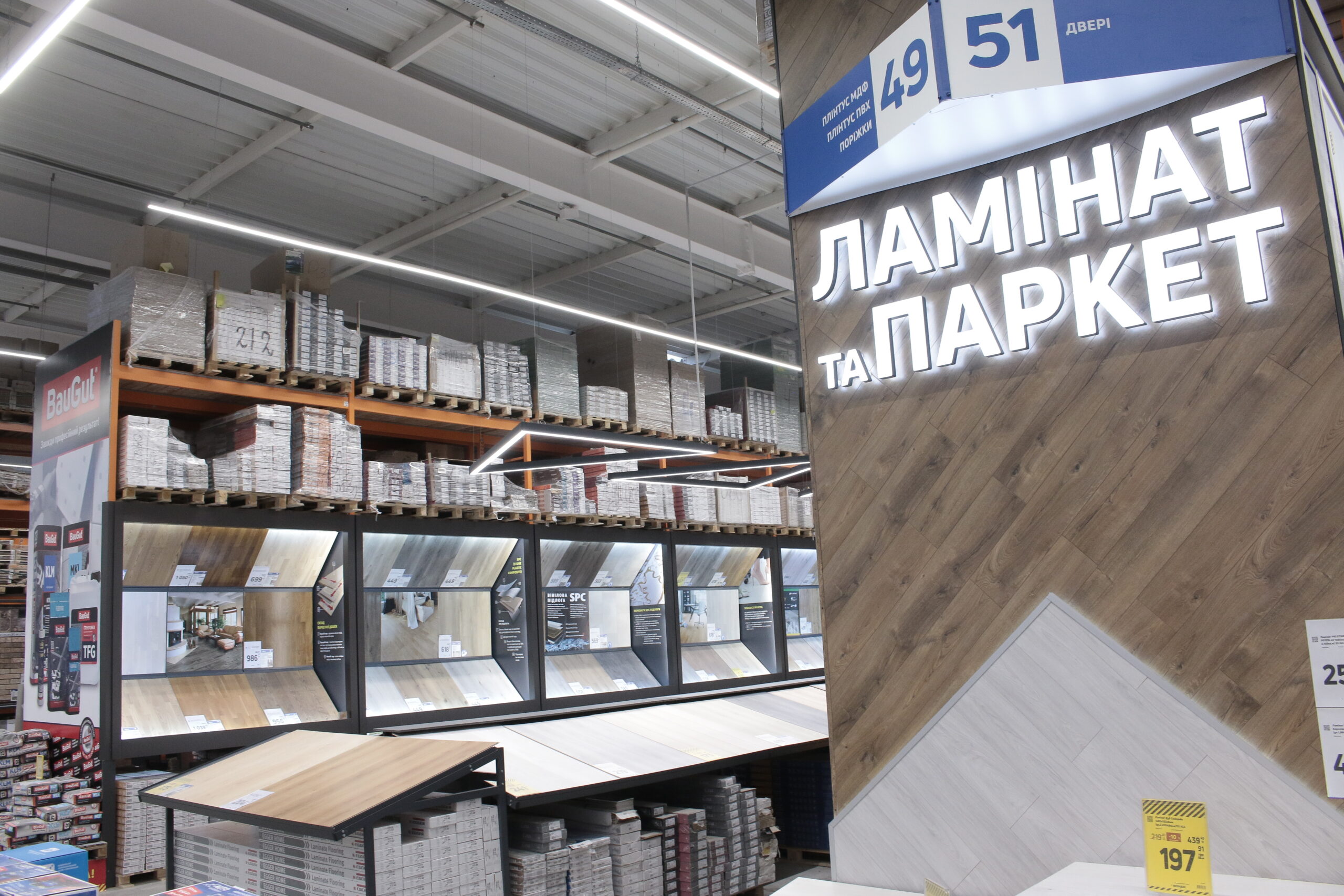 Найбільшим відділом в оновленому ТЦ стане «Сад та город», площею понад 3000 кв. м. Серед інших великих відділів «Вироби з дерева» (2200 кв. м), «Будівельні матеріали» (1600 кв. м) і «Декор» (майже 1000 кв. м). Більше тисячі квадратних метрів також займатимуть відділи «Вироби з металу», «Покриття для підлоги» і «Сантехніка», в структурі якого буде реалізовано новий формат shop in shop «Дім води».