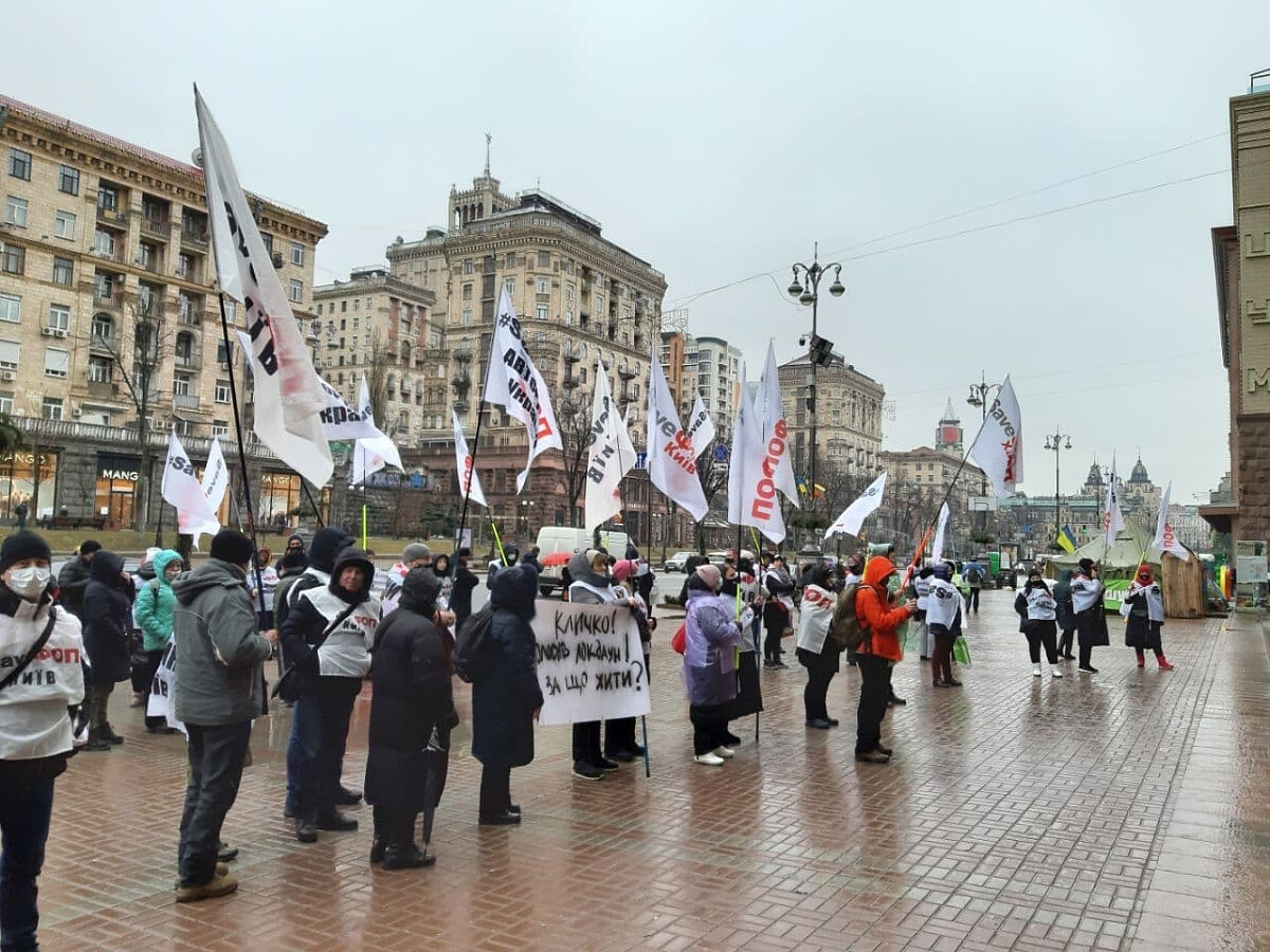 Десятки людей близько 9 ранку у Києві почали збиратися під будівлею КМДА. Учасники акції навіть намагалися зайти до приміщення адміністрації, однак їм завадили поліціянти.