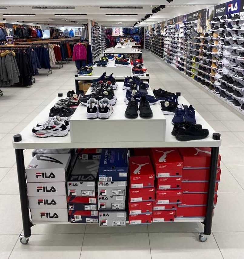 У магазині представлена лінійка товарів відомих міжнародних брендів – Jack Wolfskin, Columbia, Asics, Regatta outdors, Rip Curl, Wrangler, Northland тощо. Покупці зможуть придбати екіпіровку для активних видів спорту, а також одяг для туризму та повсякденного користування.