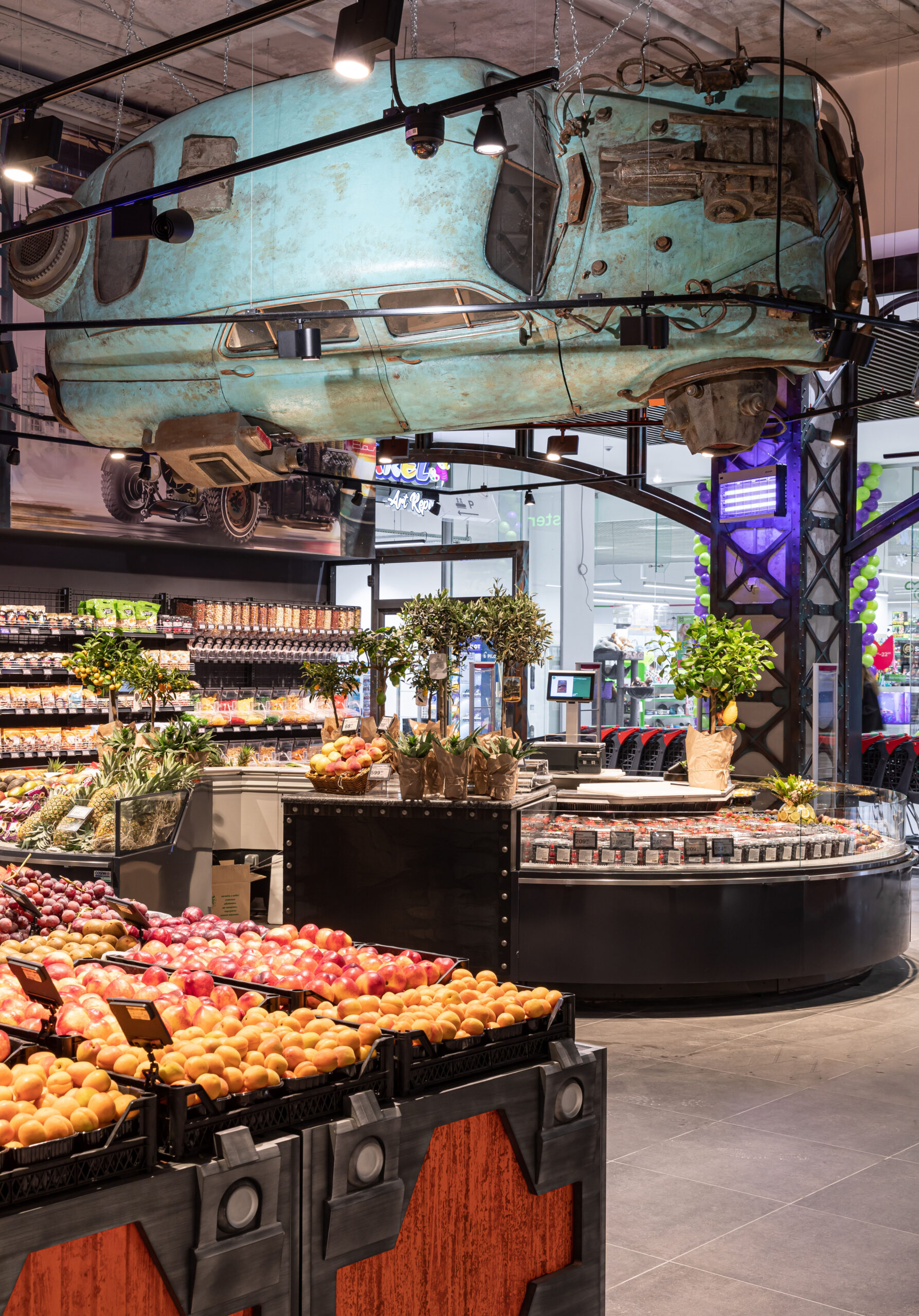 Дизельпанковий «Сільпо» — це 2700 м2 естетики наукової фантастики та фантастичні продукти. Їх ми привозимо з 83 країн світу, вишукуємо серед малих українських фермерів для проєкту «Лавка Традицій» та виробляємо самі в команді з талановитими крафтярами. Культовий гречаний багет, подовий хліб, неймовірні шоколадні цукерки за рецептами, вигаданими спеціально для наших Гостей.