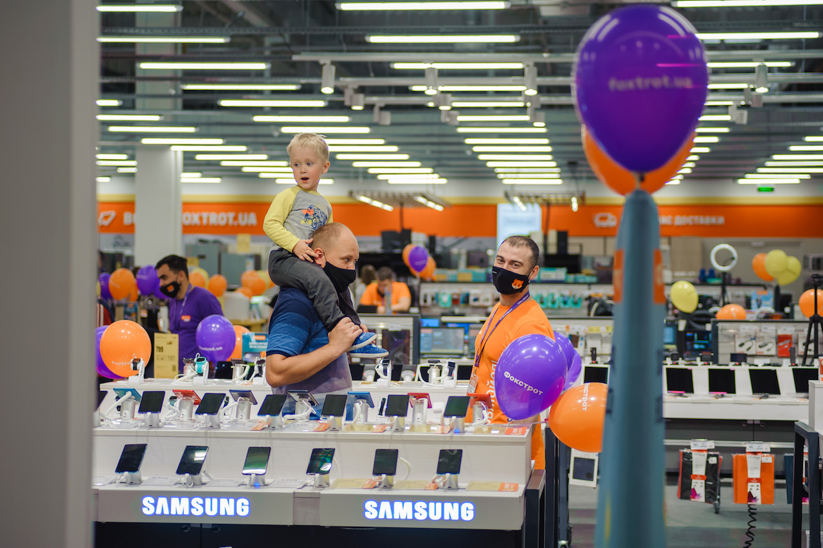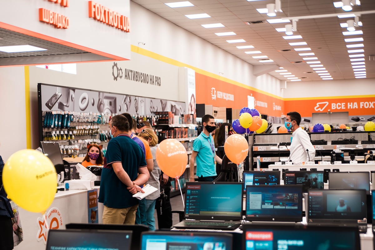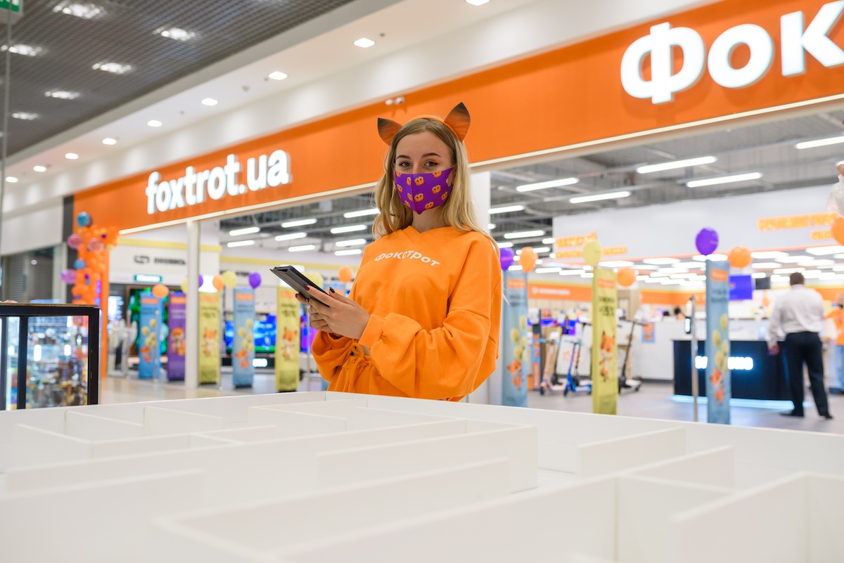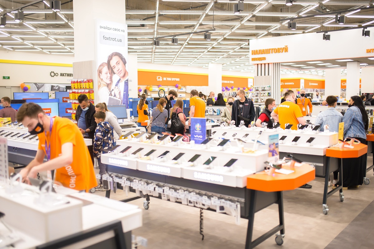 Перший у переліку – Фокстрот у львівському ТРЦ King Cross Leopolis (вул. Стрийська, 30). Щоб спроектувати магазин за актуальною концепцією та при цьому зберегти основні принципи формату shop-in-shop, у процесі реновації торгівельну площу оптимізовано до 1400 кв. м.