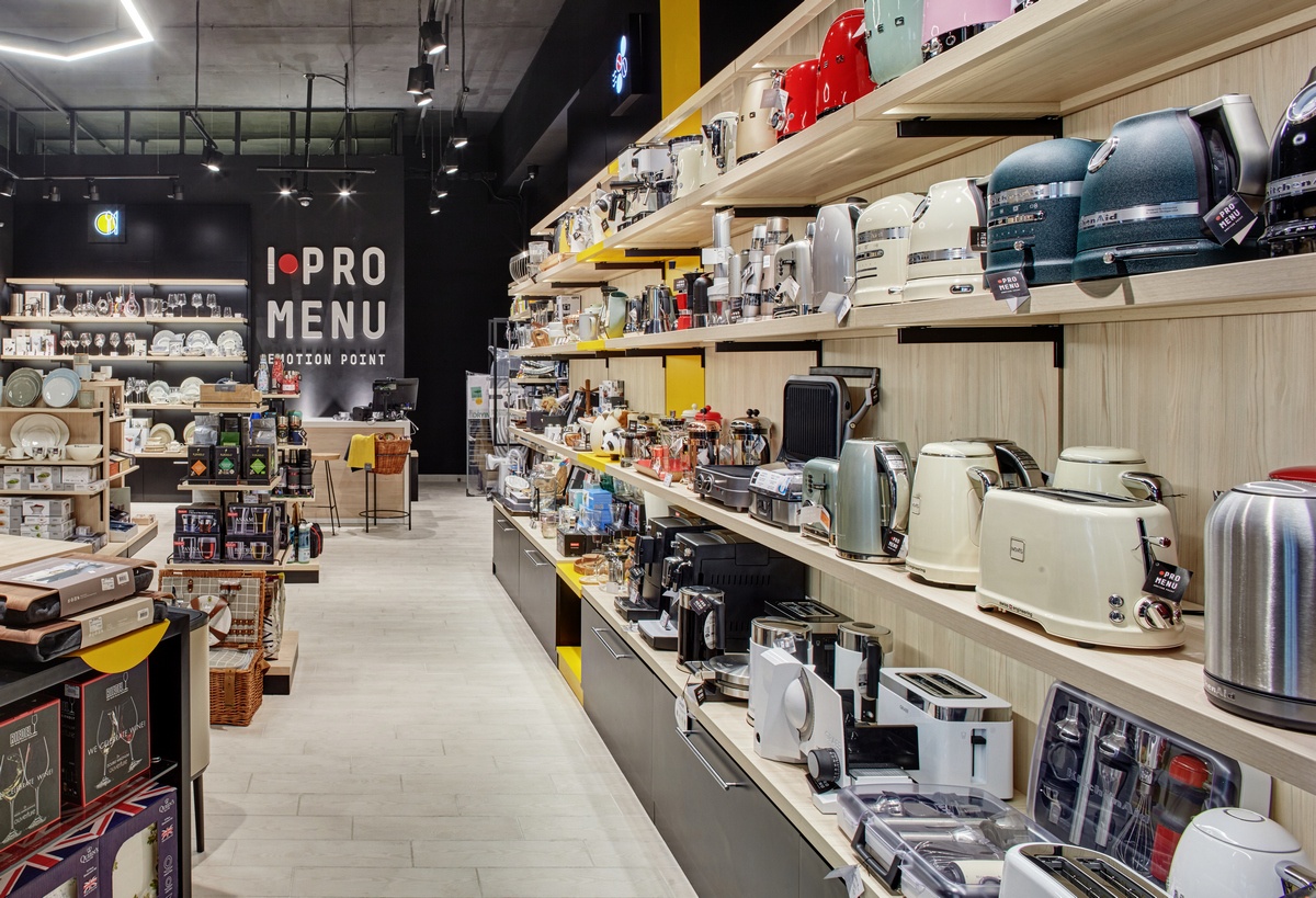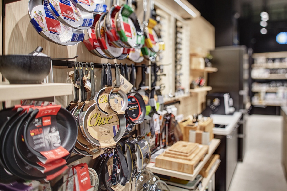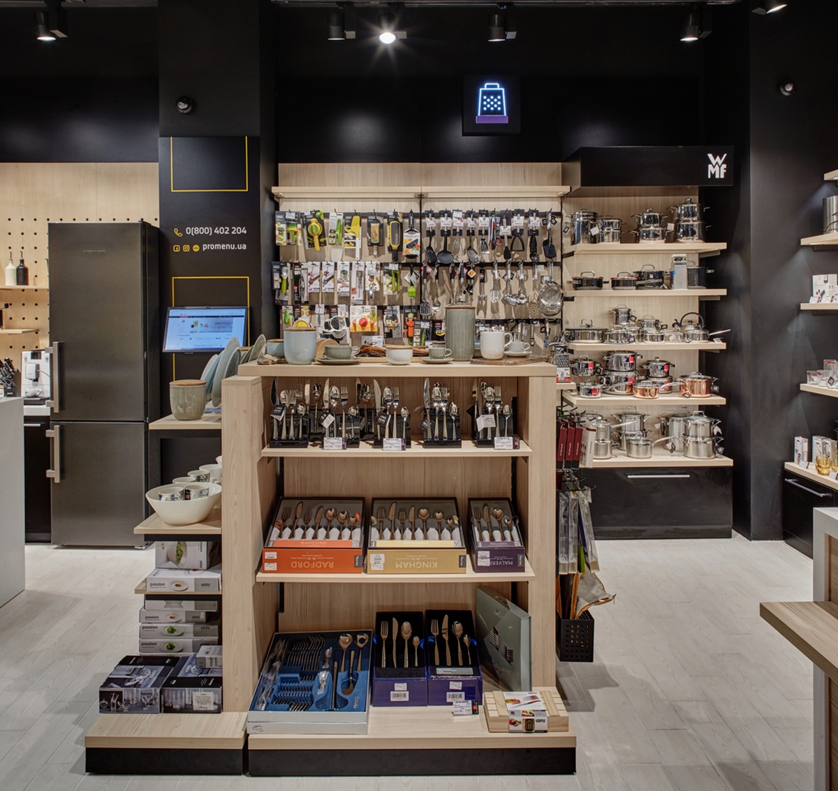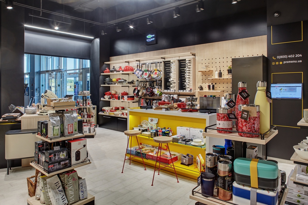 Новий магазин розташувався на першому поверсі торгового центру. Тут можна придбати посуд, дрібну побутову техніку, кухонний інвентар, предмети для сервірування та домашній декор від відомих світових брендів.