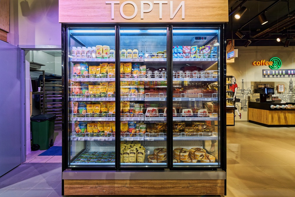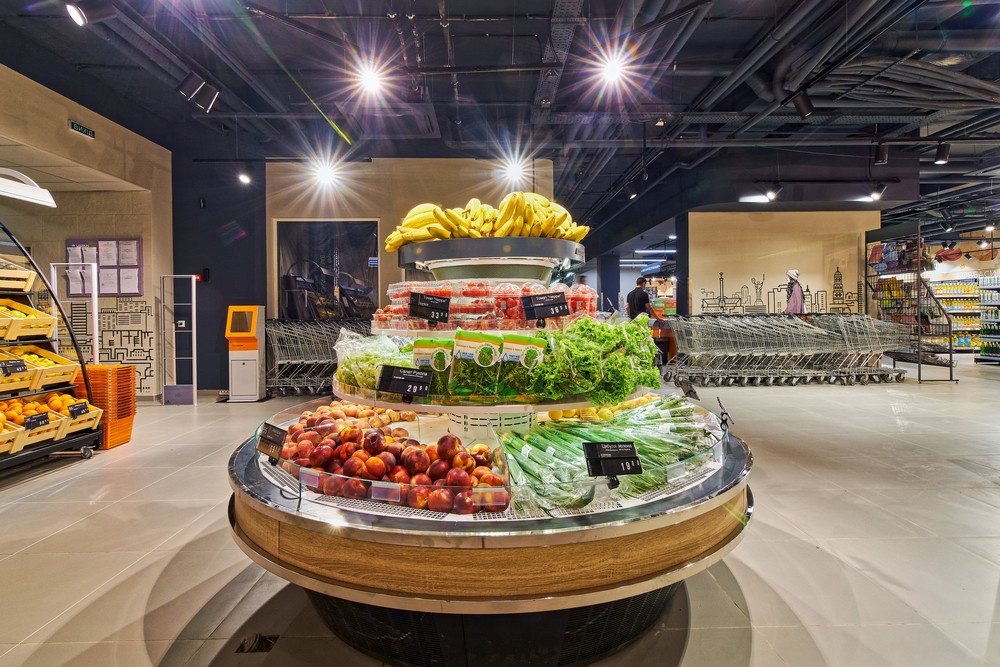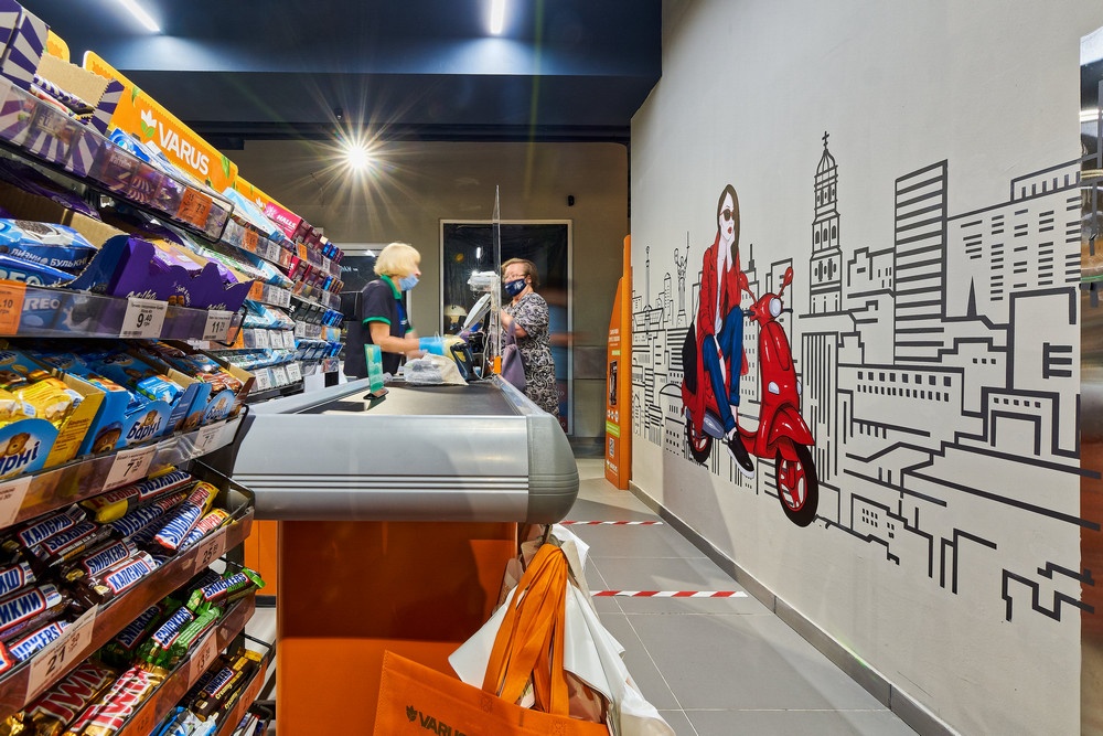 Хоча площа магазина всього 550 кв. м, у ньому розташовано шість звичайних кас і три каси самообслуговування. Це забезпечує високу пропускну спроможність магазину, тому клієнти не будуть гаяти час у чергах.