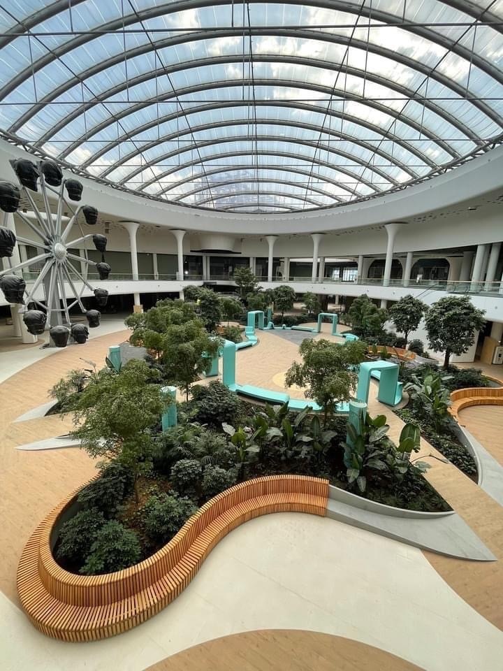 Концепцией ТРЦ предусмотрено уникальное общественное пространство, под названием «Оазис» (общей площадью в 2000 м кв.). Это первый из подобных объектов в Украине, где под куполом создан настоящий public place с живыми растениями, сухим фонтаном, гидравлической сценой и зонами отдыха. Внутри и снаружи ТРЦ высажено около 2000 деревьев.