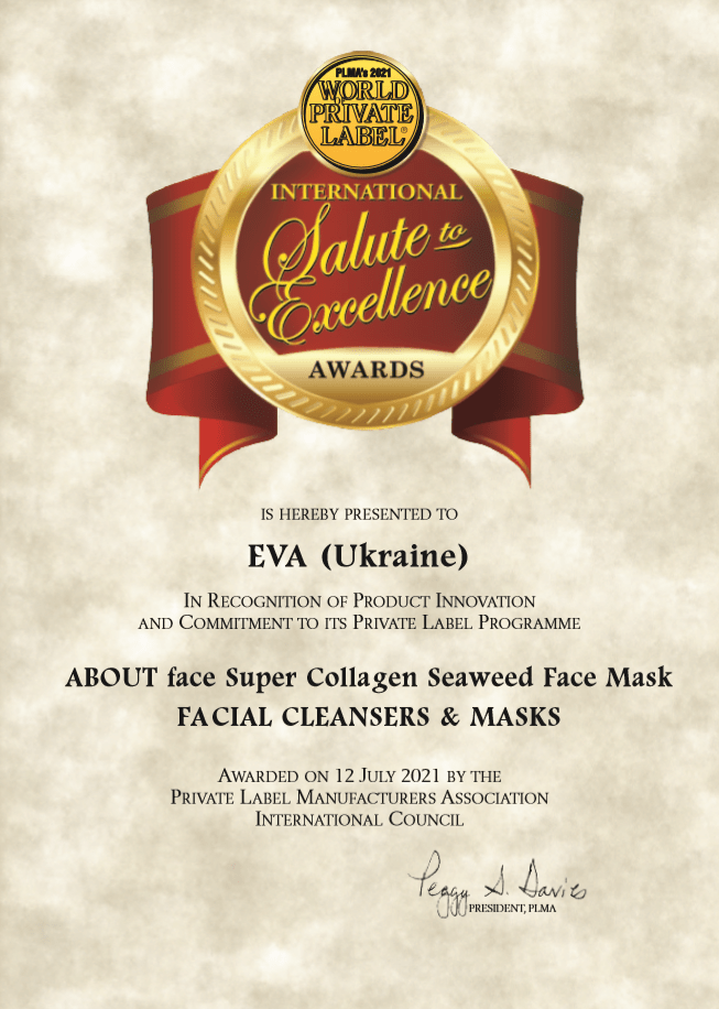 Так, колагенова маска для обличчя ABOUT face Super Collagen Seaweed Face Mask із насінням водоростей здобула перемогу в категорії Cleansers & Masks. Завдяки великому вмісту колагену, мікроелементів, вітамінів та амінокислот маска живить шкіру, стимулює природну регенерацію клітин, покращує мікроциркуляцію в клітинах, глибоко зволожує шкіру та насичує її киснем. Журі проєкту відзначило екологічність продукту, його унікальність, збалансований склад і текстуру, а також ідеальне поєднання ціни та якості.