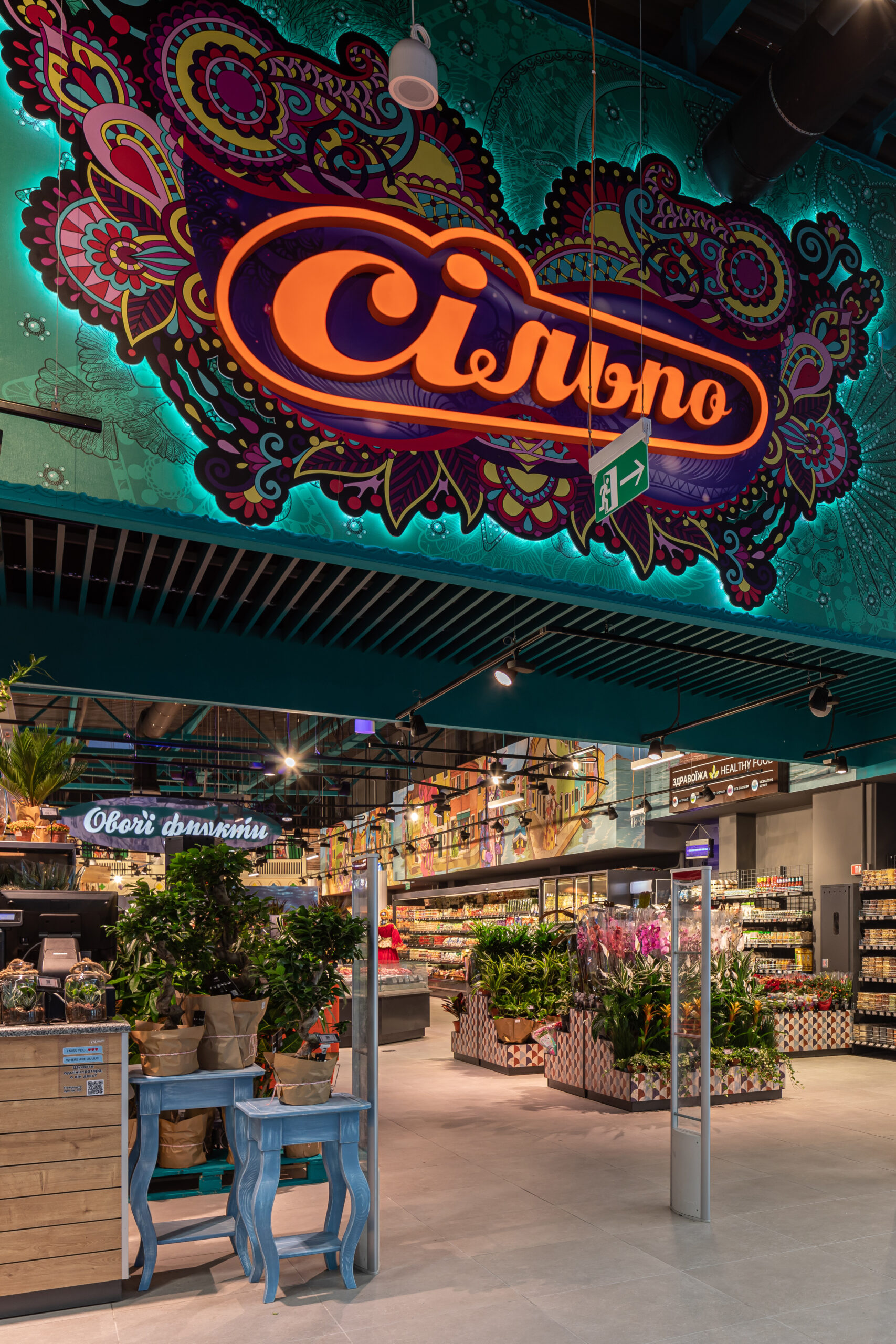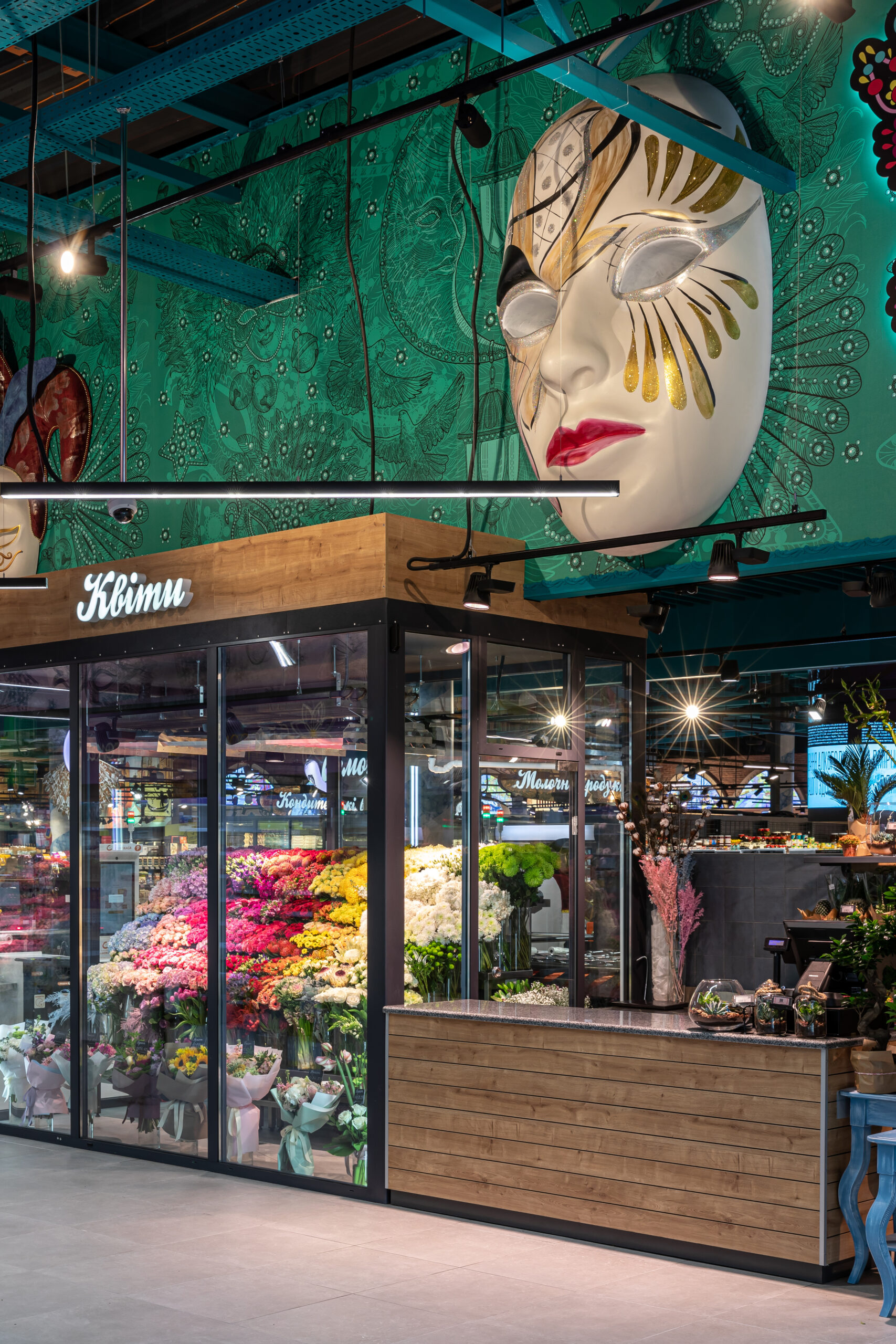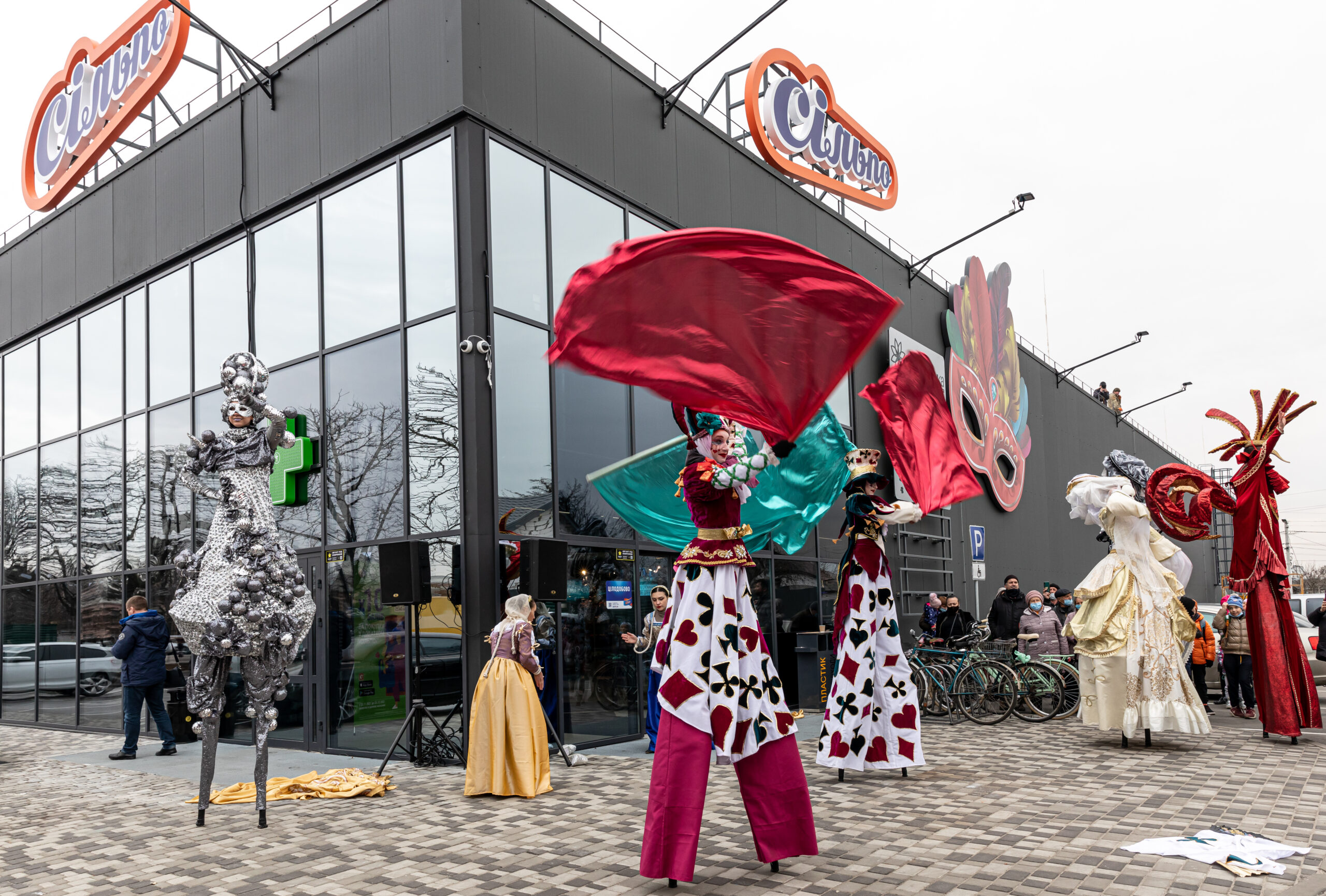 До створення дизайну супермаркету команду «Сільпо» надихнув найвідоміший костюмований маскарад Італії. Простір та інтер’єр магазину наповнені головними атрибутами карнавалу – пишними костюмами, масками та віялами. Щоб підкреслити вишуканий асортимент «Сільпо», в супермаркеті розмістили як класичні карнавальні маски, так і з тематикою продуктів. Наприклад, маску сирної людини, маску-морозиво та маску із солодощами.