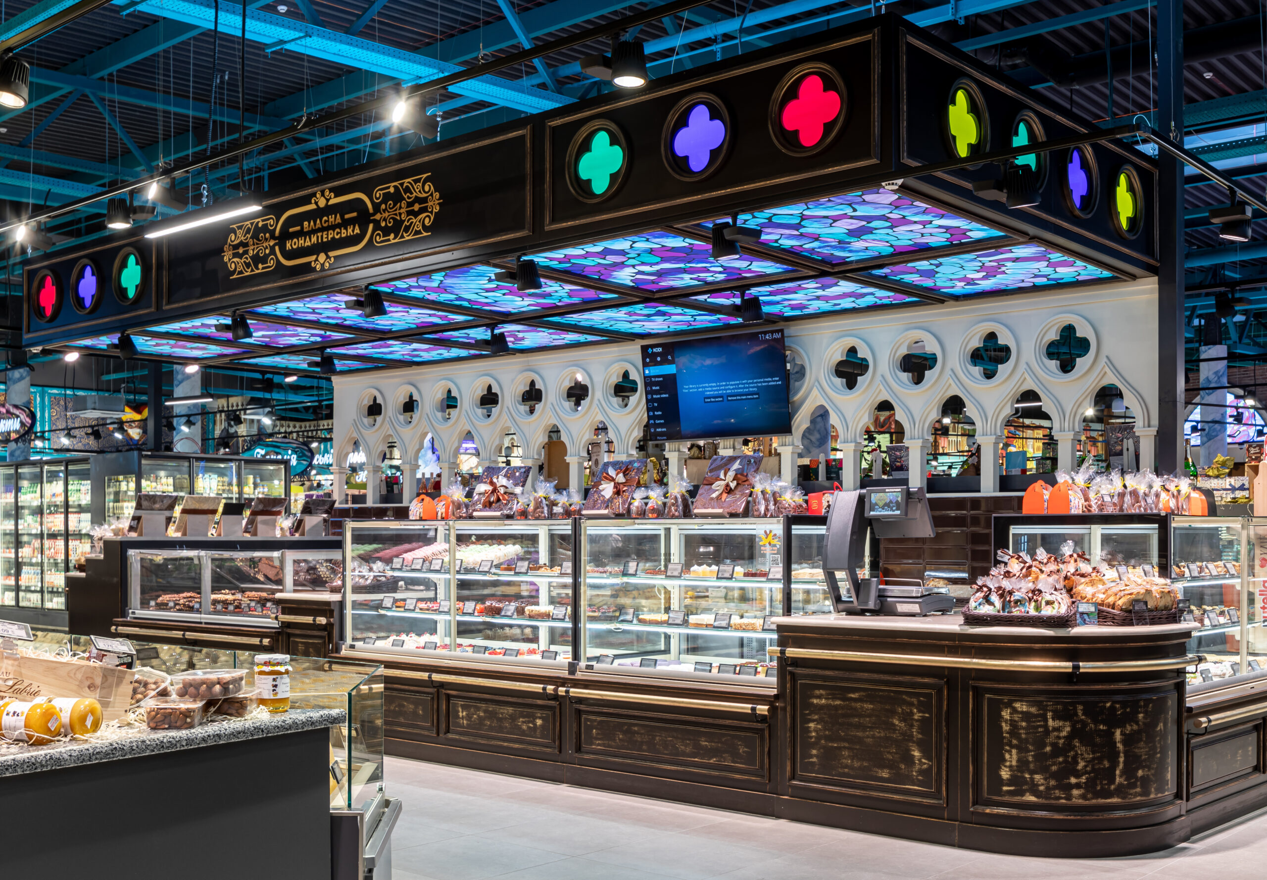 У магазині використовуються електронні цінники, що дозволяє скоротити витрати паперу й оперативно оновлювати ціни на товари. А щоб прискорити процес покупок працює 8 кас та 6 самокас.
