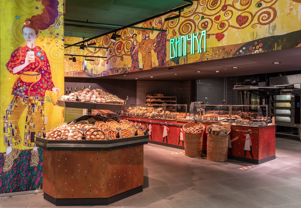 Роботи загадкового генія надихнули нашу команду втілити їх в стилістиці нового «Сільпо». Так «Поцілунок» та інші культові картини з’явилися на ілюстраціях в інтер’єрі супермаркету та наповнили його різними відтінками золотого.