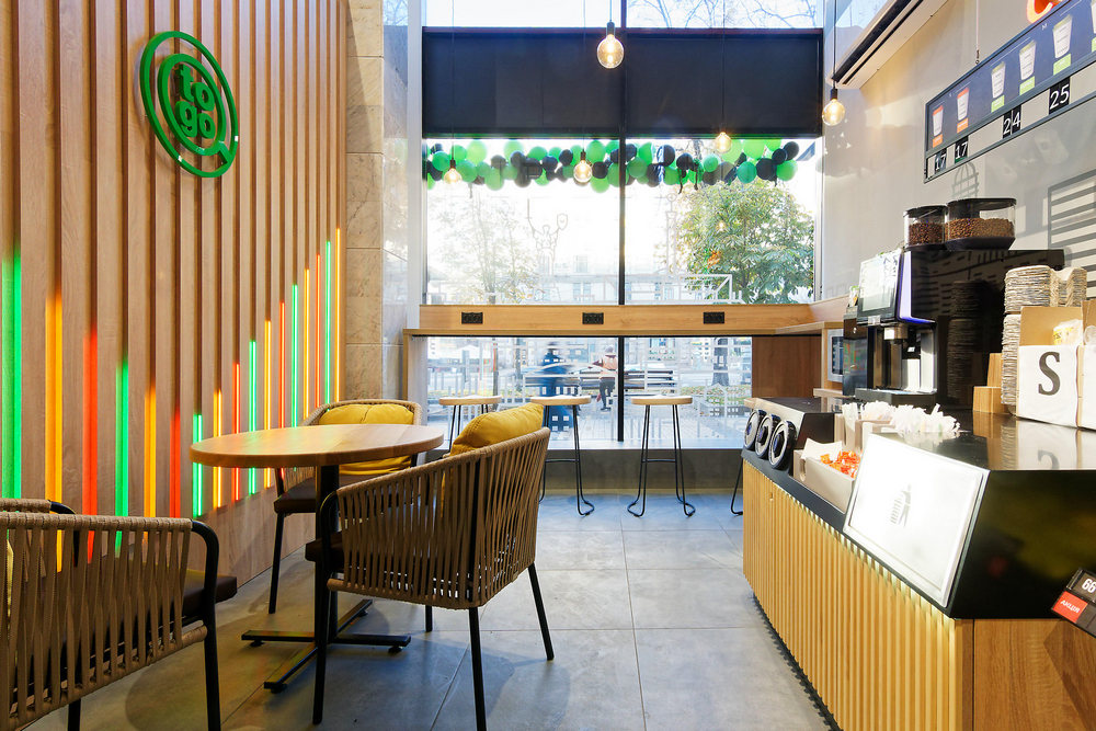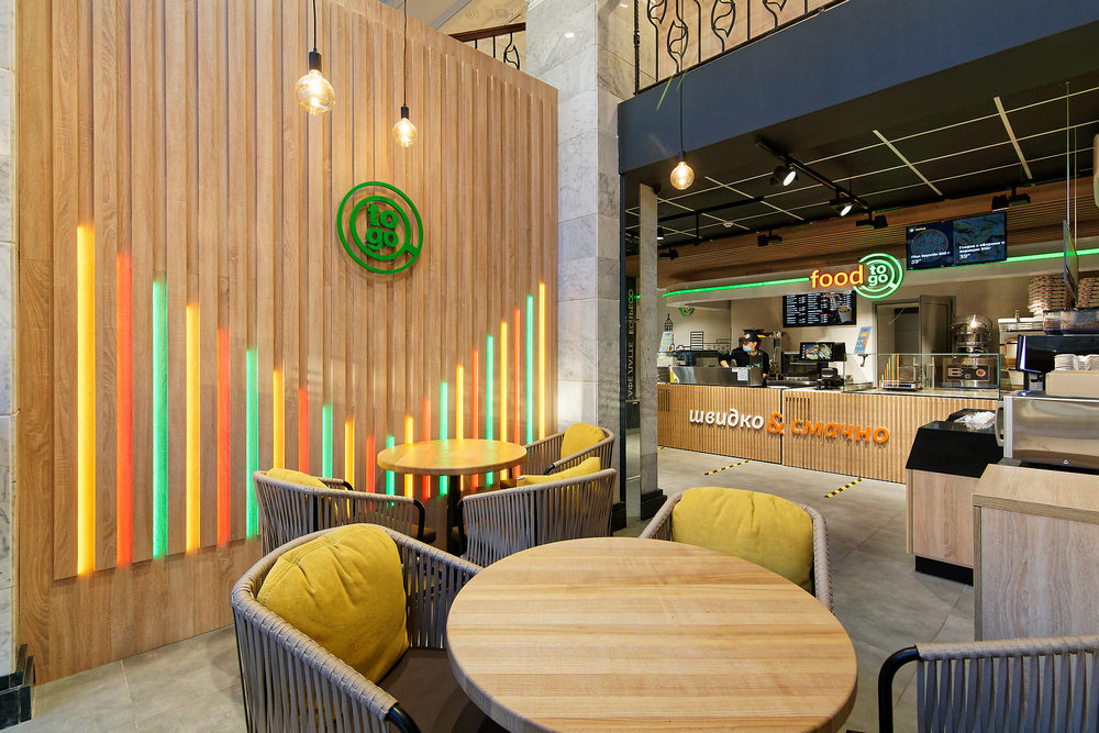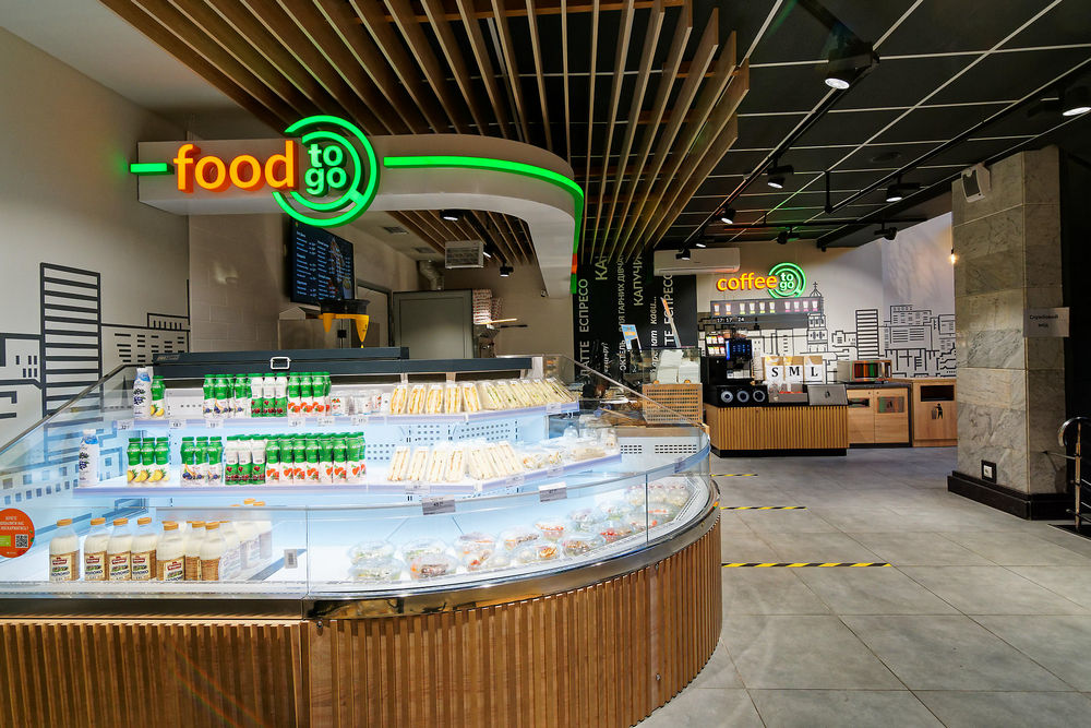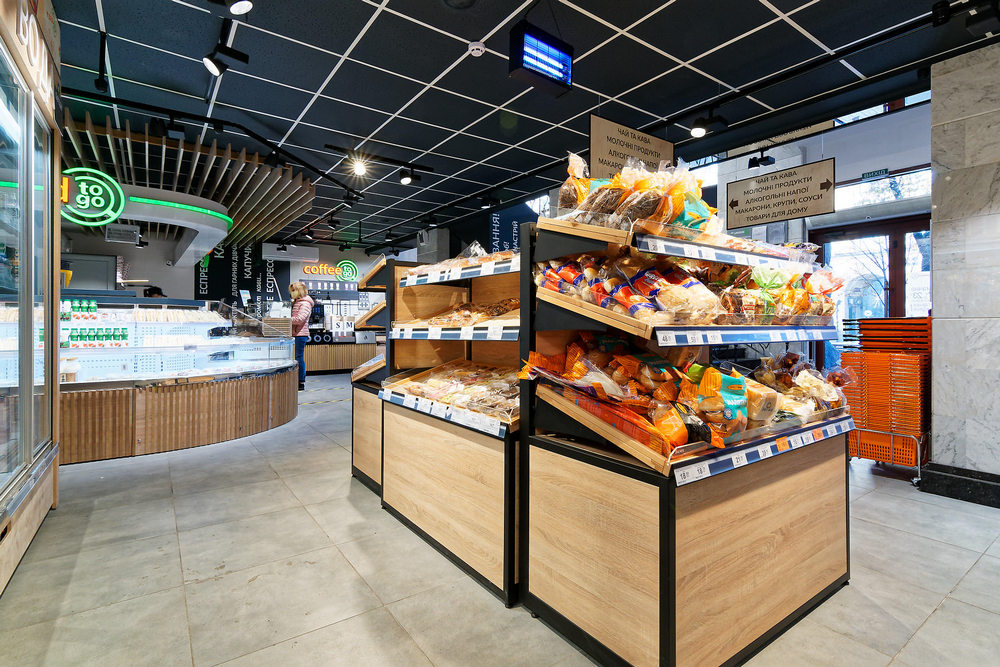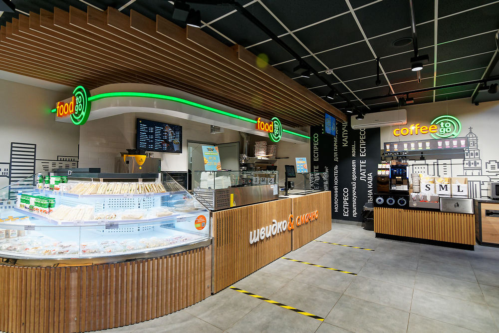 Найголовніше тут — легкість вибору, швидкість покупок і готові страви. До речі, спробувати їх можна на місці у затишній зоні кафе просто в магазині.