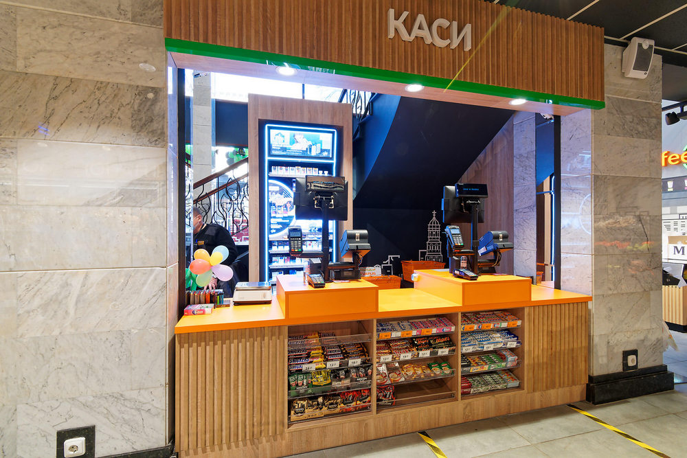 На невеликій площі в 300 кв. мв розташовано шість кас — чотири звичайні і дві каси самообслуговування. Все для зручності клієнтів, аби їм не довелось гаяти час у чергах.