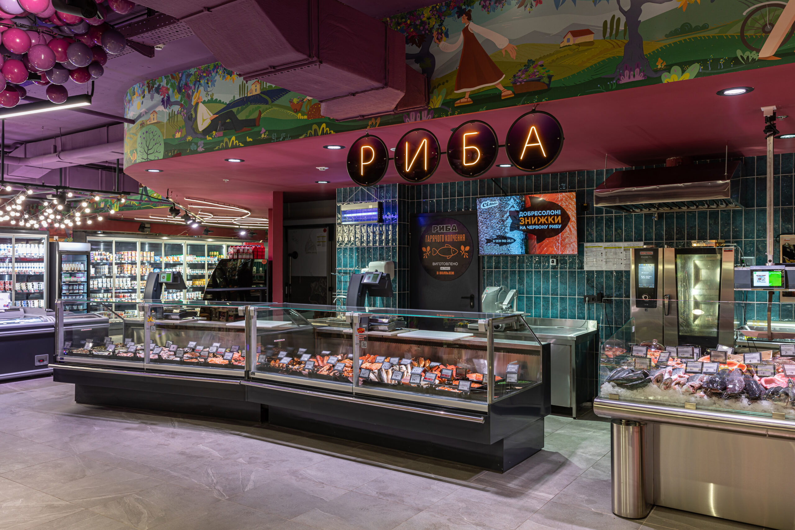 У магазині площею 800 квадратних метрів ви знайдете весь спектр смаків для ваших дегустацій. Тут крутиться гриль, подають страви з печі та лунає музика для розслабленого настрою і шопінгу. Новий «Сільпо» запропонує товари власного імпорту. Кулінарний відділ супермаркету, крім звичної української домашньої кухні, обіцяє щодня дивувати вас мозаїкою справжньої італійської піци. А ще у магазині є прогресивно-екологічне нововведення — електронні цінники, що дають змогу скоротити витрати паперу й до того ж справді оперативно оновлювати ціни на товари.