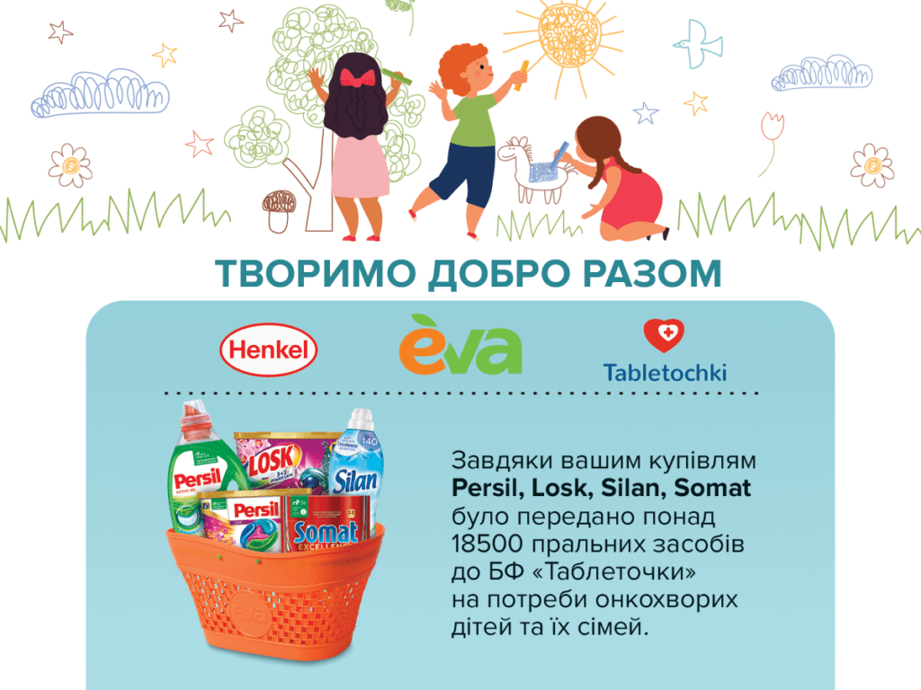 «Творимо добро разом» – благодійна колаборація лінії магазинів EVA та компанії «Хенкель Україна»