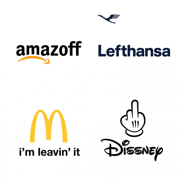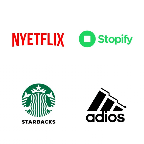 Наповнений каламбуром проект передбачає, що відомі імена говорять російському народу «досвидания» за допомогою своїх логотипів, оскільки тиск посилюється і виникають проблеми з ланцюжком постачання.
