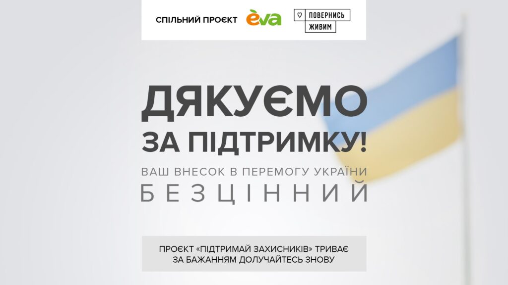 Проєкт «Підтримай захисників» у EVA: 132 тис. клієнтів зібрали понад 1,1 млн. грн для ЗСУ
