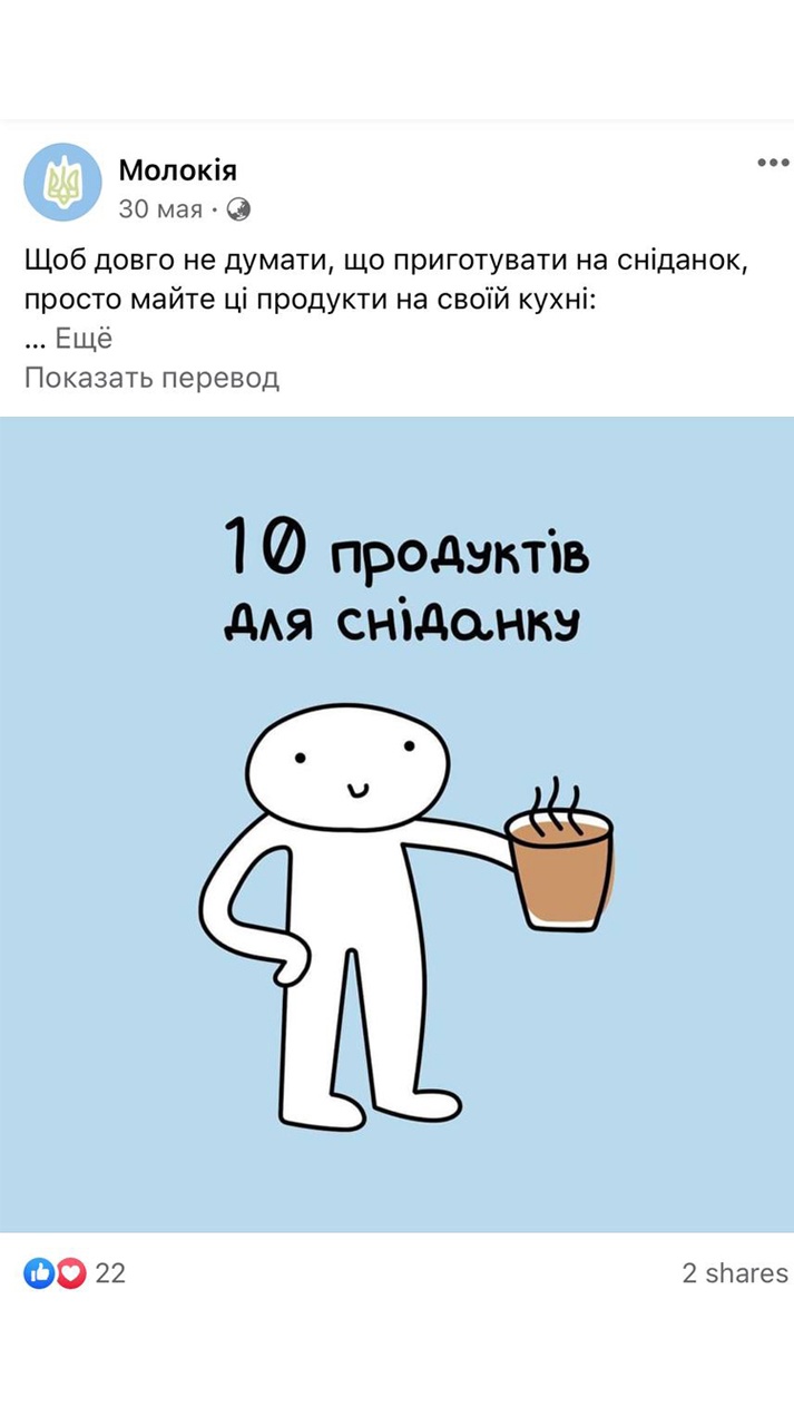 Відмінний приклад оптимізованих контент стратегій – мережі магазинів Varus та Рукавичка, а також бренд Молокія. Ці компанії відключили недоцільну рекламу (заклики до покупки, фанові відео, промо на отримання нових фолверів), сфокусувавшись на релевантному контенті, завдяки чому одержують високі органічні охоплення.