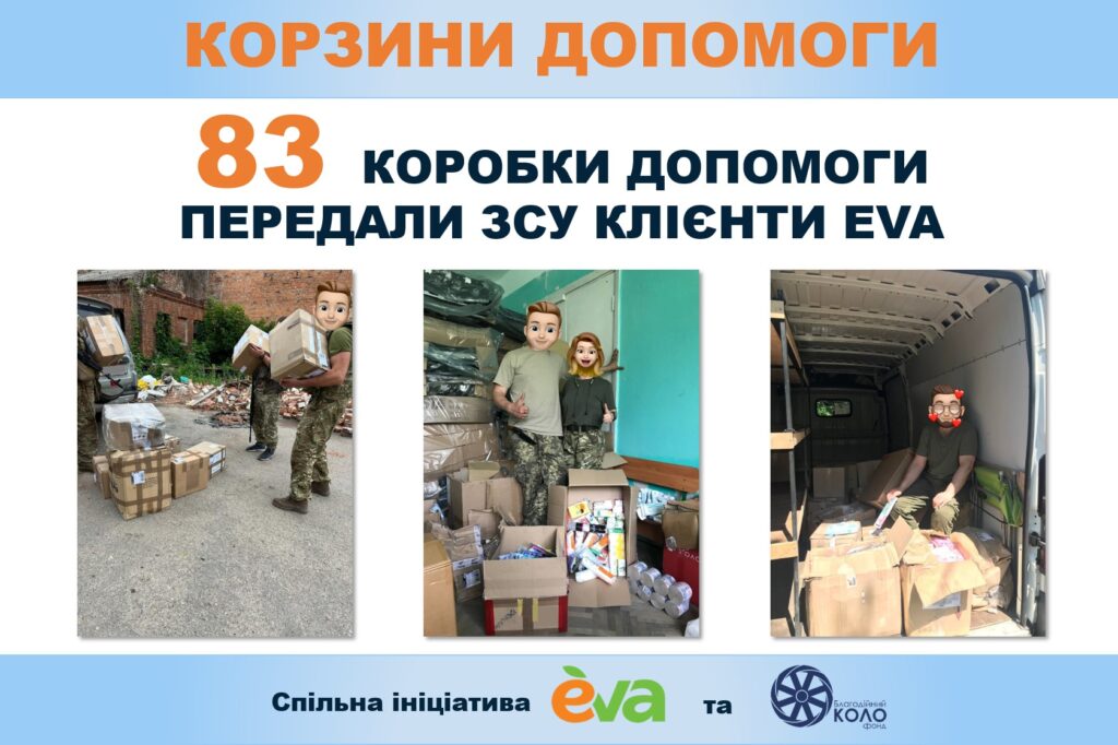 Понад 110 коробок допомоги для ЗСУ: перші результати проєкту «Корзини допомоги» від EVA