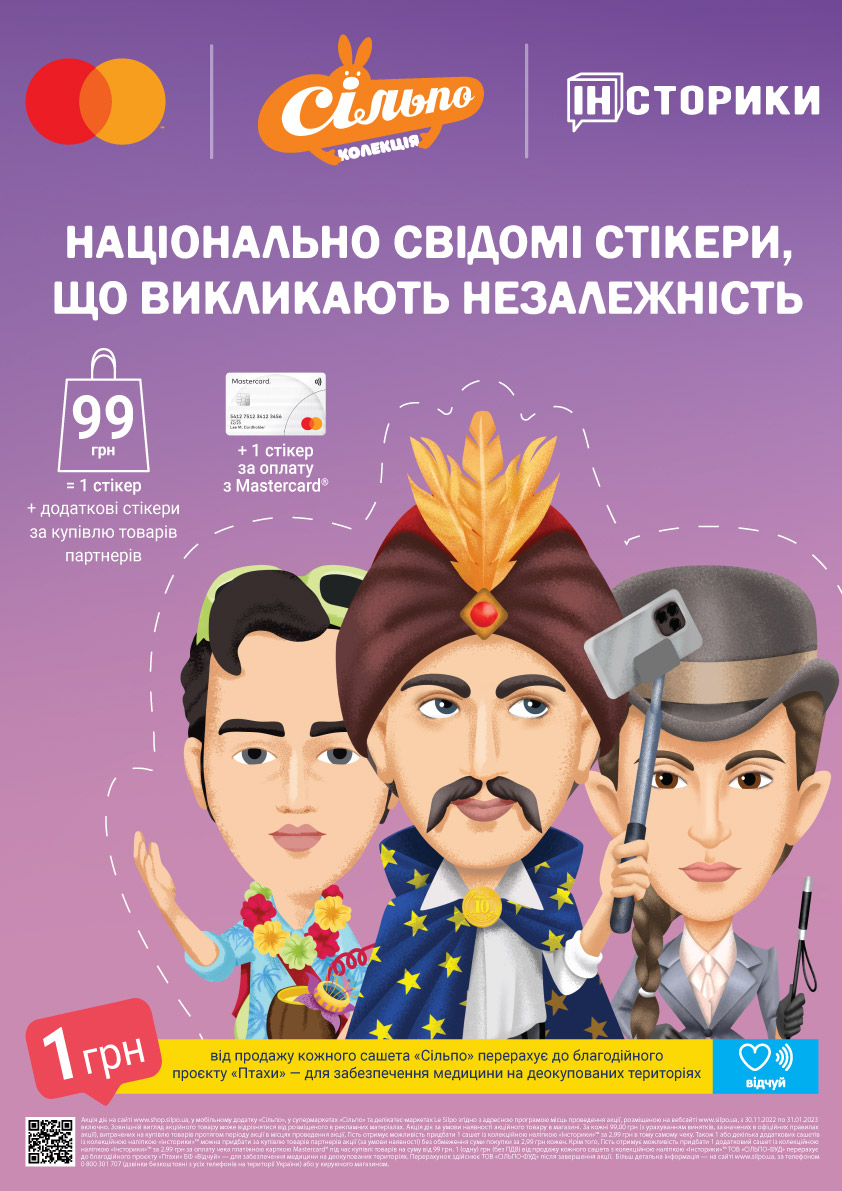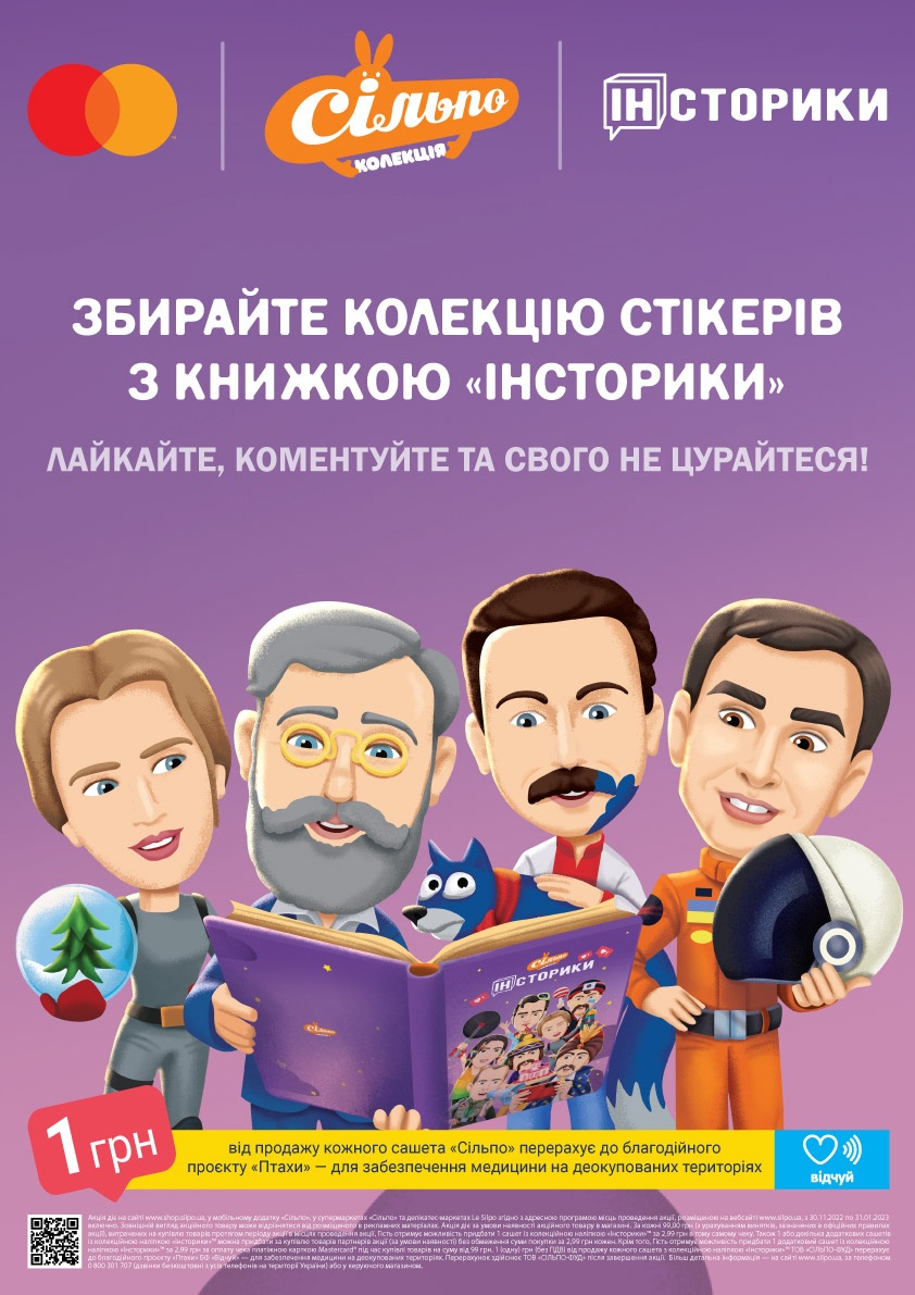 Мережа супермаркетів «Сільпо» за підтримки компанії Mastercard розпочинає просвітницько-благодійний проєкт «Інсторики». Це яскравий та живий проєкт про історію України, сучасний погляд на діяльність та життєвий шлях 25 видатних історичних постатей.