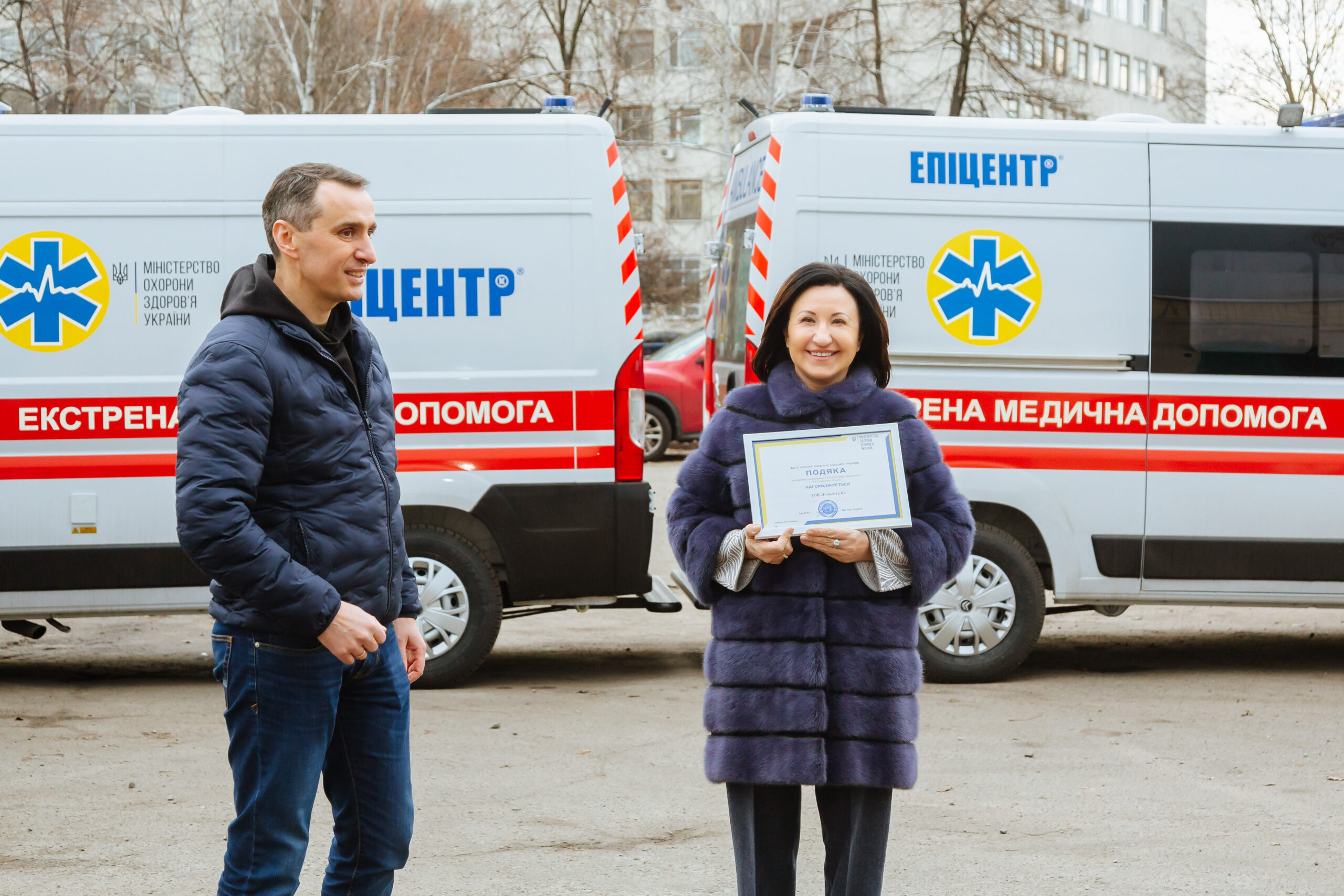 Передача чергової партії машин відбулася на території Центру екстреної медичної допомоги та медицини катастроф МОЗ у Києві. Міністр охорони здоров’я України Віктор Ляшко відзначив компанію “Епіцентр К” офіційною подякою від міністерства за вагомі досягнення у професійній діяльності.