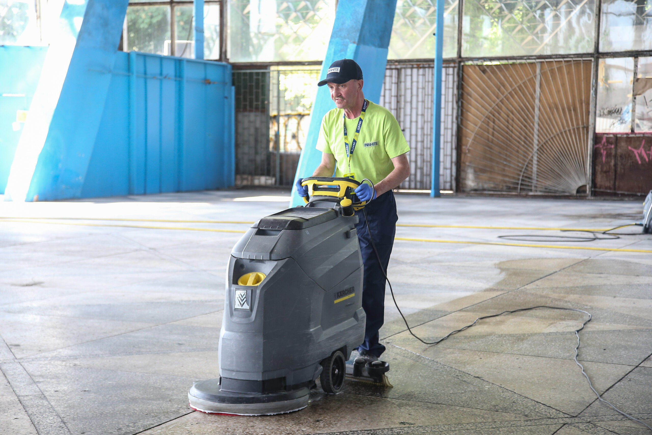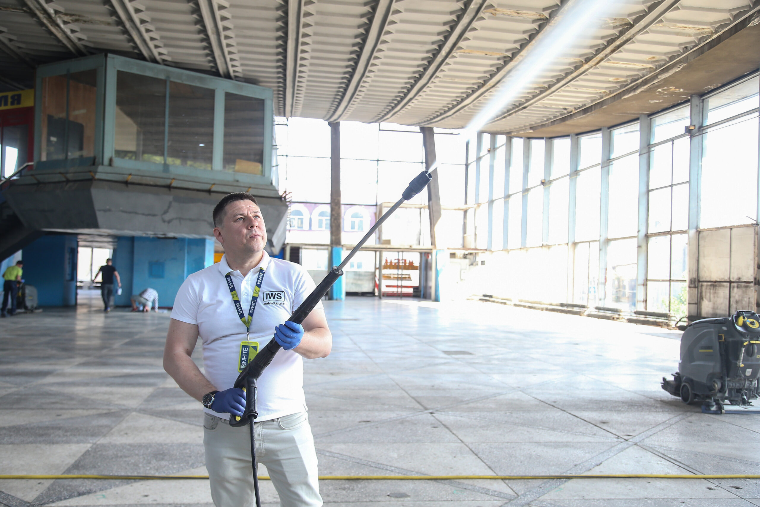 Прибирання на Житньому провели у два етапи. На першому — за допомогою 15 кваліфікованих клінерів і спецтехніки компанії Inwhite відмили опорні колони, здійснили глибоке чищення підлоги та видалили весь бруд з огородження антресолі.