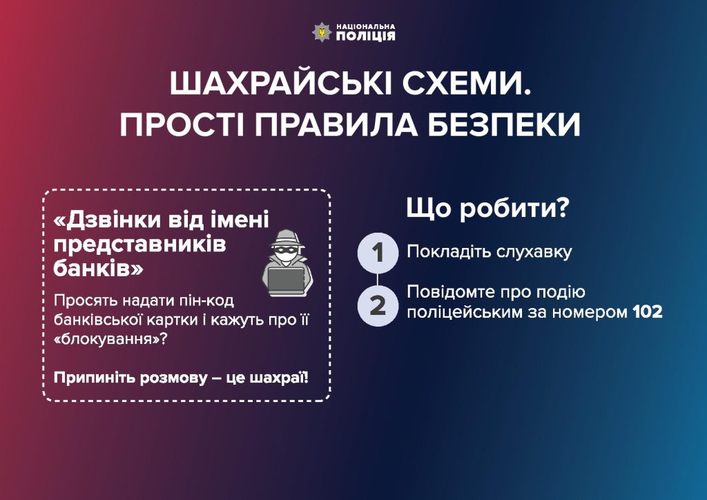 - Якщо вам телефонували шахраї, повідомте про це поліцейським за номером 102.