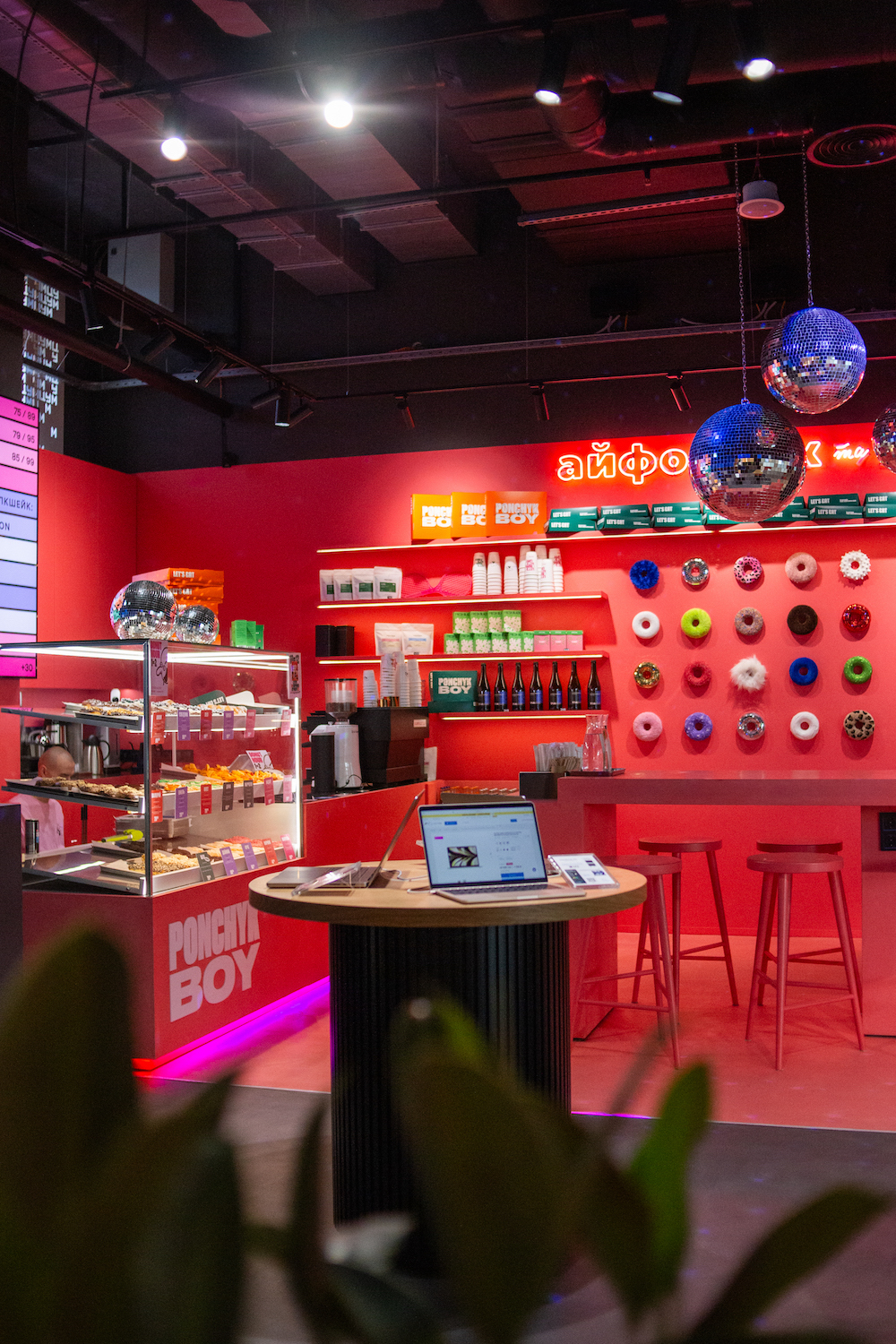 У ЦУМ Київ відкрився заклад Ponchyk Boy та Техно Їжак. Засновники називають новий формат Айфончик та Пончик. Гостям пропонують золотий пончик Том та різноманітні аксесуари і новинки техніки Apple.