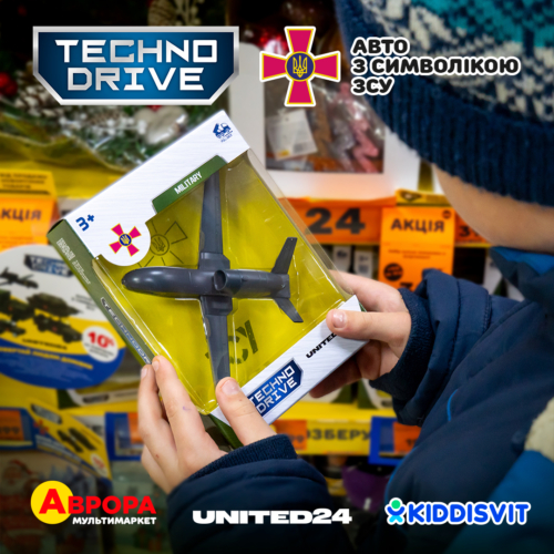 Компанія KIDDISVIT запустила спільний благодійний проєкт з мережею мультимаркетів Аврора та фандрейзинговою платформою UNITED24. Стартував продаж брендованих мілітарі машинок TechnoDrive з символікою ЗСУ. Придбати колекційне авто можна ексклюзивно в мережі Аврора. Частину коштів з продажу компанії передадуть через UNITED24 за напрямом «Відбудова України». Мета — зібрати 1 785 000 грн.