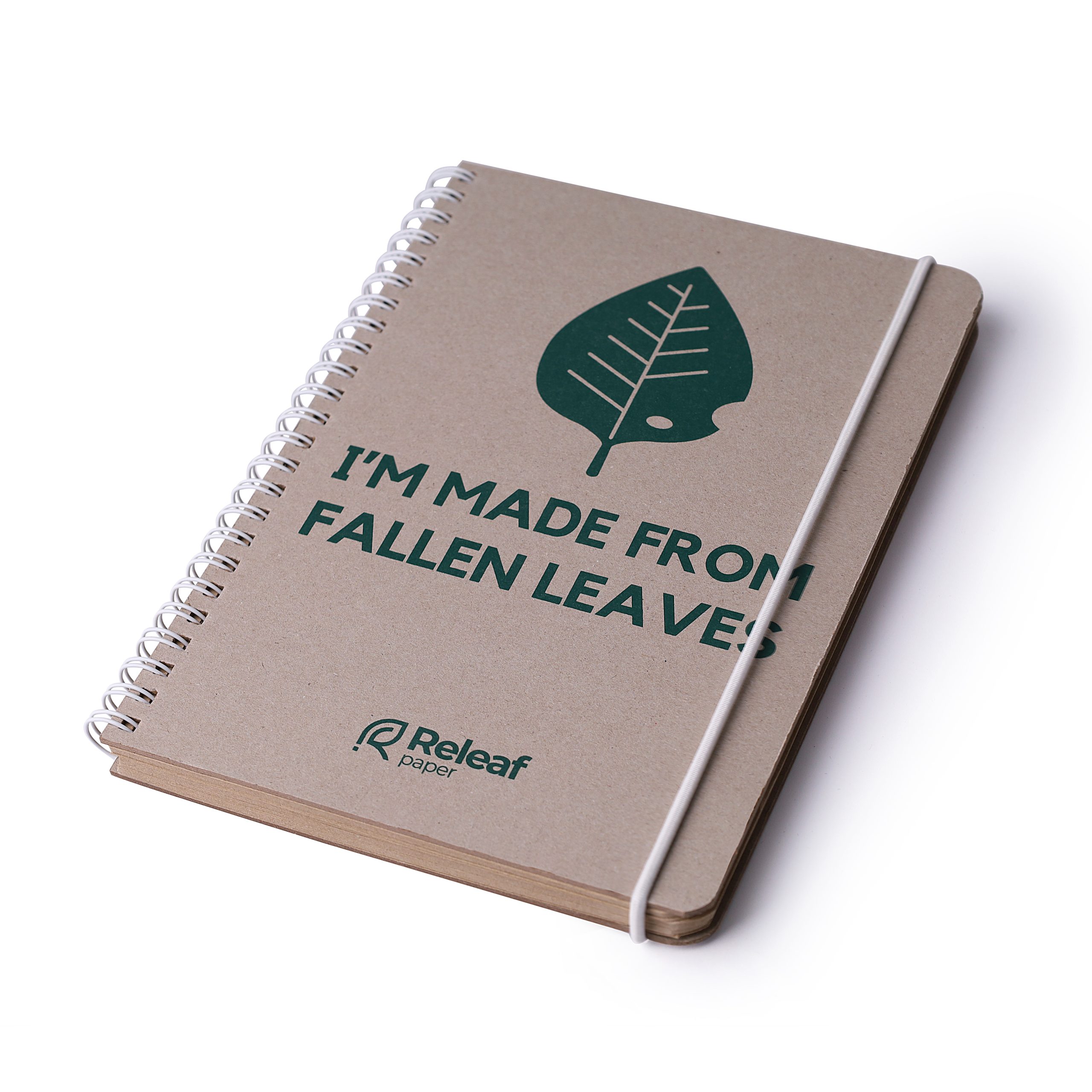 Паперовий блокнот від Releaf Paper поєднує в собі елегантність і екологічність, оскільки створений із паперу з опалого листя. Серед ключових особливостей: