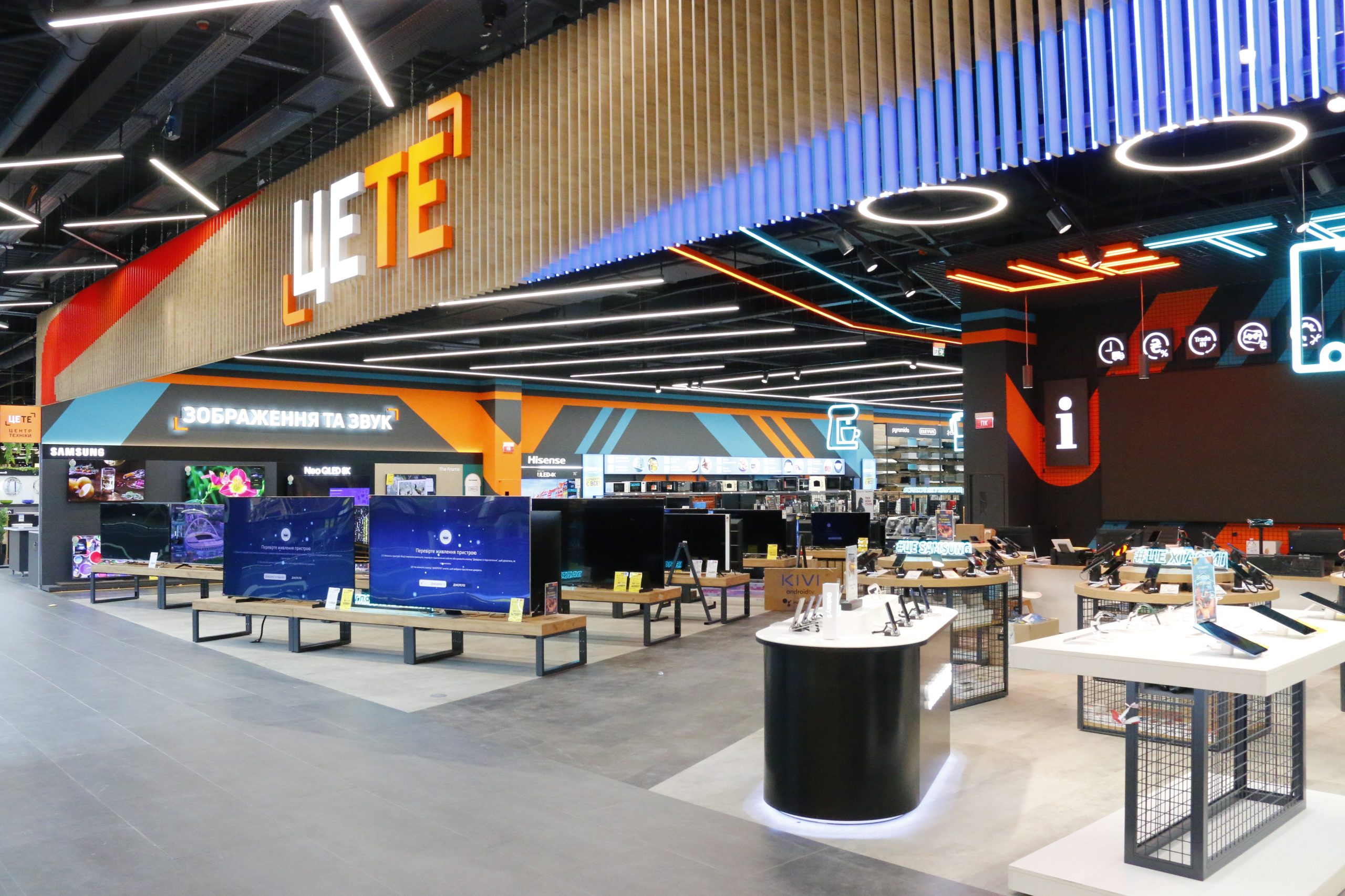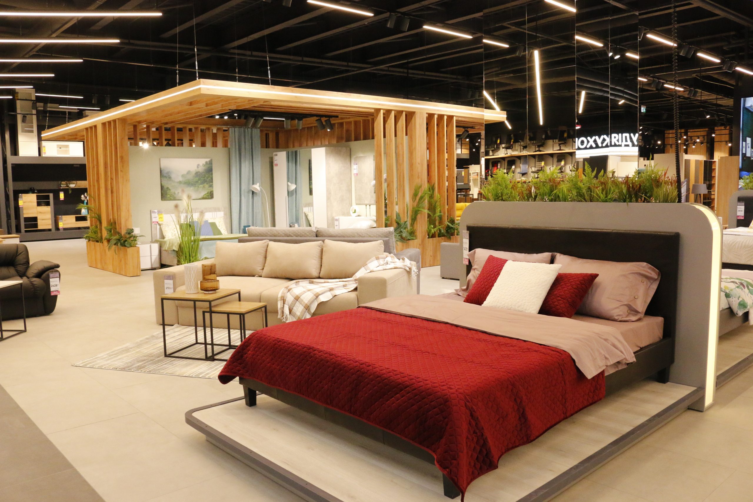 Зокрема, на першому поверсі ТЦ працюватиме великий продуктовий Food Market площею 2900 кв. м, Аптека 100+, зоомагазин Lapki, флора-центр Букет та вже звичні для мережі відділи з широким асортиментом товарів для будівництва, ремонту та оздоблення осель. На другому поверсі відкриються Центр Меблів (1600 кв. м), Центр Техніки ЦЕ ТЕ (1630 кв. м), відділи електротехніки, покриттів для підлоги та сантехніки, товарів для саду та городу, а також Галереї Деко (1890 кв. м), Intersport (790 кв. м), E.Pic (790 кв. м) та Expert (280 кв. м).