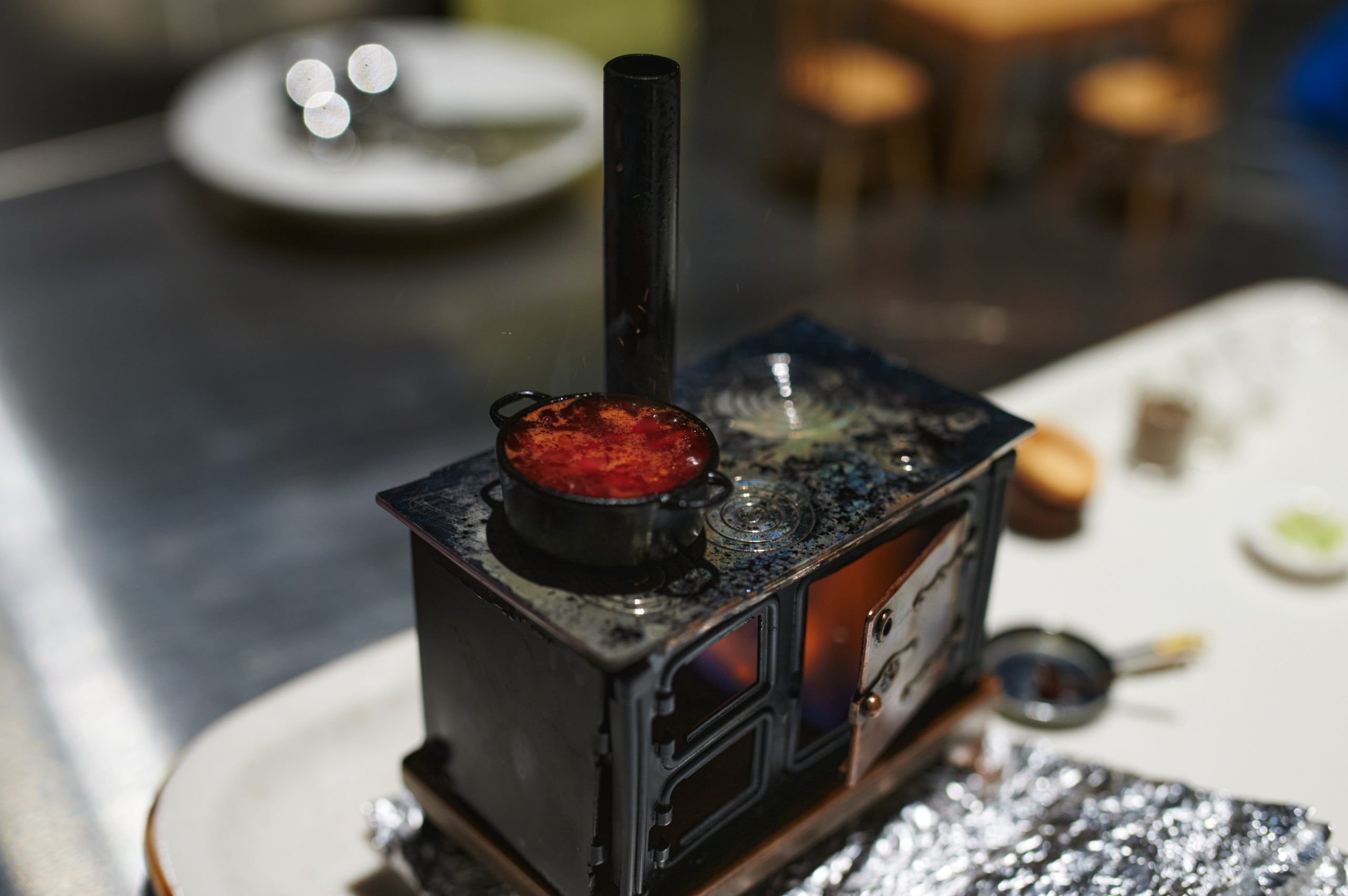 Микола Ільїн розповів, що для приготування мікроборщу брав мікроказан ємністю 7 мл. Щоб борщ вдався насиченішим він заздалегідь приготував м’ясний мікробульйон, а ще запік морквинку та бурячок у печі.