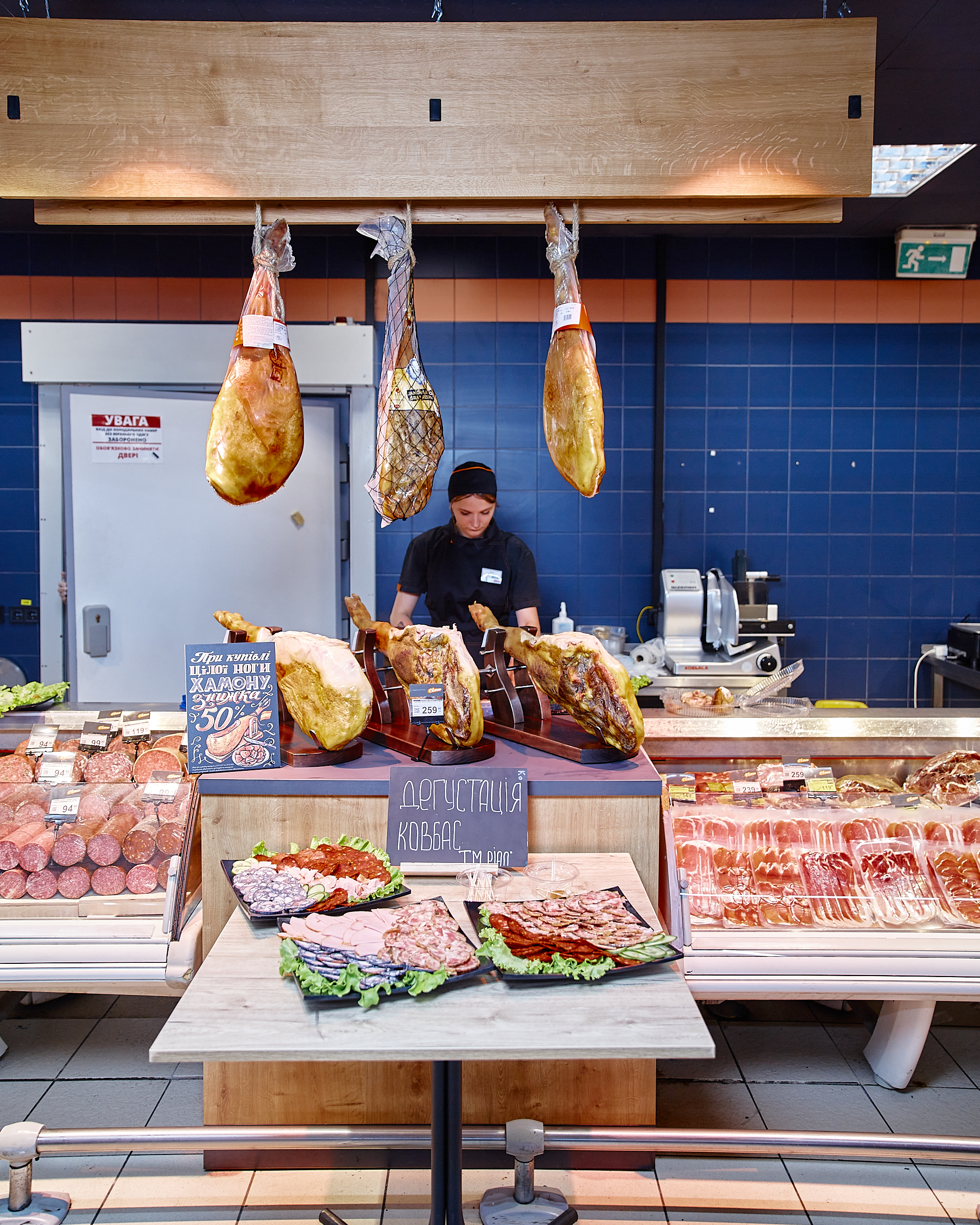 Як і завжди, на полиці ми відібрали найкращі продукти українських виробників та доставили ексклюзивні товари Власного імпорту. У цьому супермаркеті вас чекатимуть добірні фермерські продукти від «Лавки Традицій», запашна випічка та піца з власної пекарні, кондитерські вироби, які можуть виготовити на замовлення. У асортименті магазину буде рибка власного копчення, а ще великий вибір м’яса та хамона.