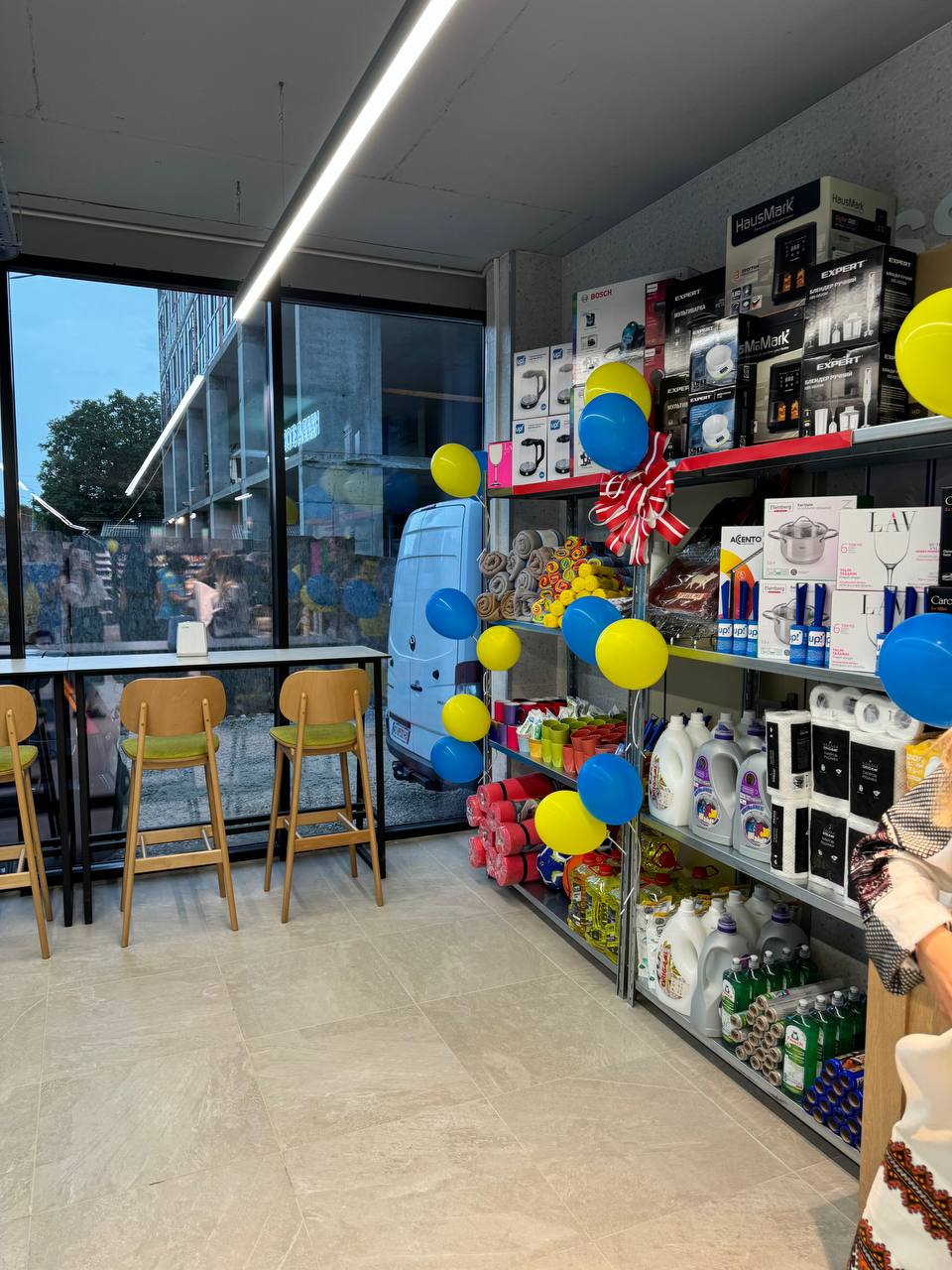 Крім того, в магазині представлено і більш звичний для мережі асортимент: побутова хімія та товари особистої гігієни, дитячі товари, зоотовари, текстиль, посуд, канцтовари, автотовари, а також будматеріали, сантехніка, освітлення, інструменти тощо.