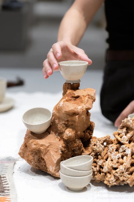 «Скеля Аq Кауа переважно складається з вапняків та мергелів. Я шукала глину, яка нагадувала б настрій цієї скелі, була б міцна, але ніжна на дотик, мала б темні, але м?які вкраплення» – говорить Ельвіра Демерджи.