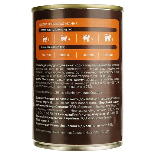 Порції розроблені для зручності: 415 г для собак та 100 г для котів — ідеально для щоденного годування!