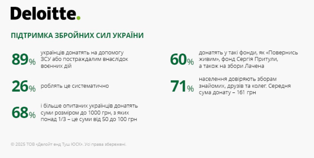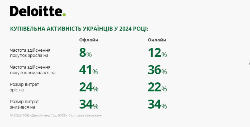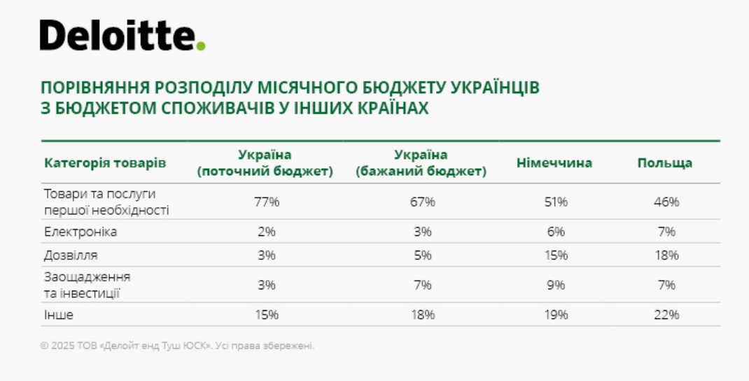 Deloitte проводить щорічні дослідження споживацької поведінки в Україні з 2019 року. Після початку повномасштабної війни українці стали уважніше ставитися до витрат, віддаючи перевагу базовим товарам та підтримці соціально відповідального бізнесу.