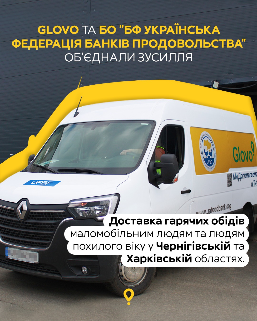 У рамках співпраці з Благодійною організацією «БФ Українська Федерація Банків Продовольства» компанія Glovo придбала новий мікроавтобус для доставки допомоги в найвіддаленіші райони Чернігівської та Харківської областей.