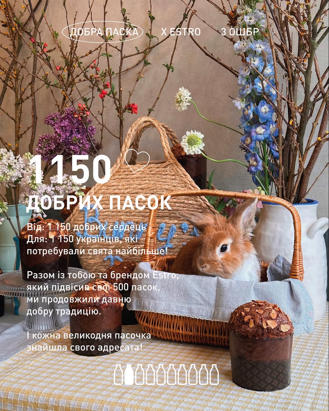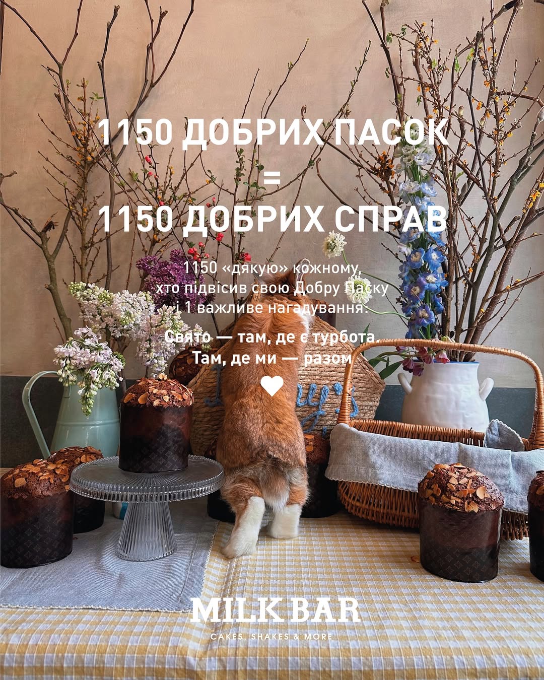 До Великодня Milk Bar разом із ESTRO вдалося зібрати та передати 1 150 святкових пасок тим, хто особливо потребує тепла й підтримки у ці непрості часи. Проєкт охопив 9 напрямків допомоги, зокрема українських військових, поранених захисників і захисниць, а також дітей з аутизмом. Організатори поділилися подробицями у каруселі дописів, а всім небайдужим надіслали 1 150 «дякую» та щире нагадування: добро має силу об’єднувати, надихати і підтримувати.
