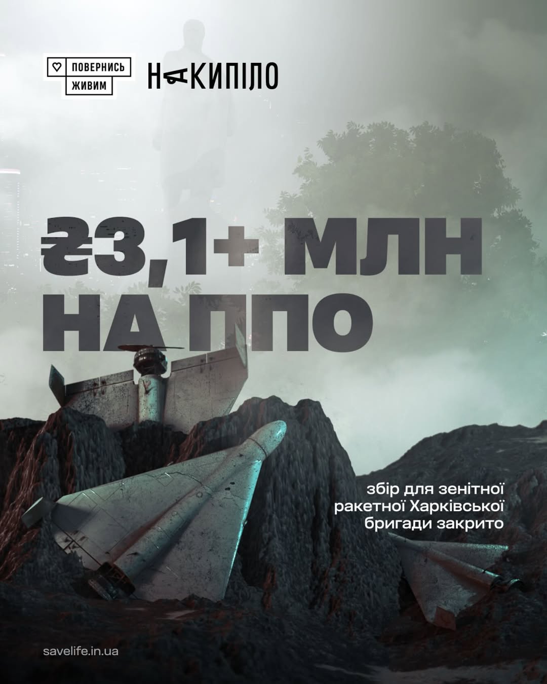 Медіагрупа «Накипіло» спільно із фондом «Повернись живим» завершила збір понад 3 110 000 гривень на потреби груп прикриття протиповітряної оборони. Отримані кошти підсилять 302-гу зенітну ракетну Харківську бригаду транспортом, сучасними засобами зв?язку та модернізованими FPV-дронами.