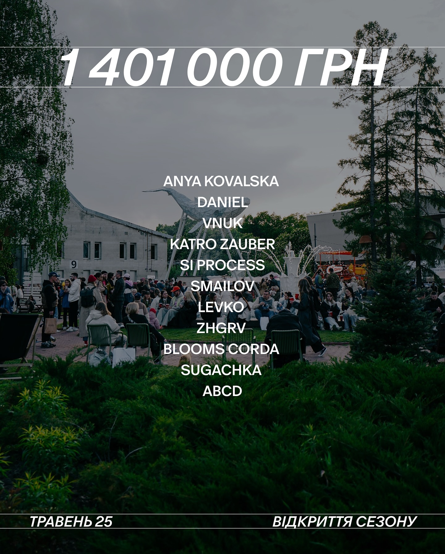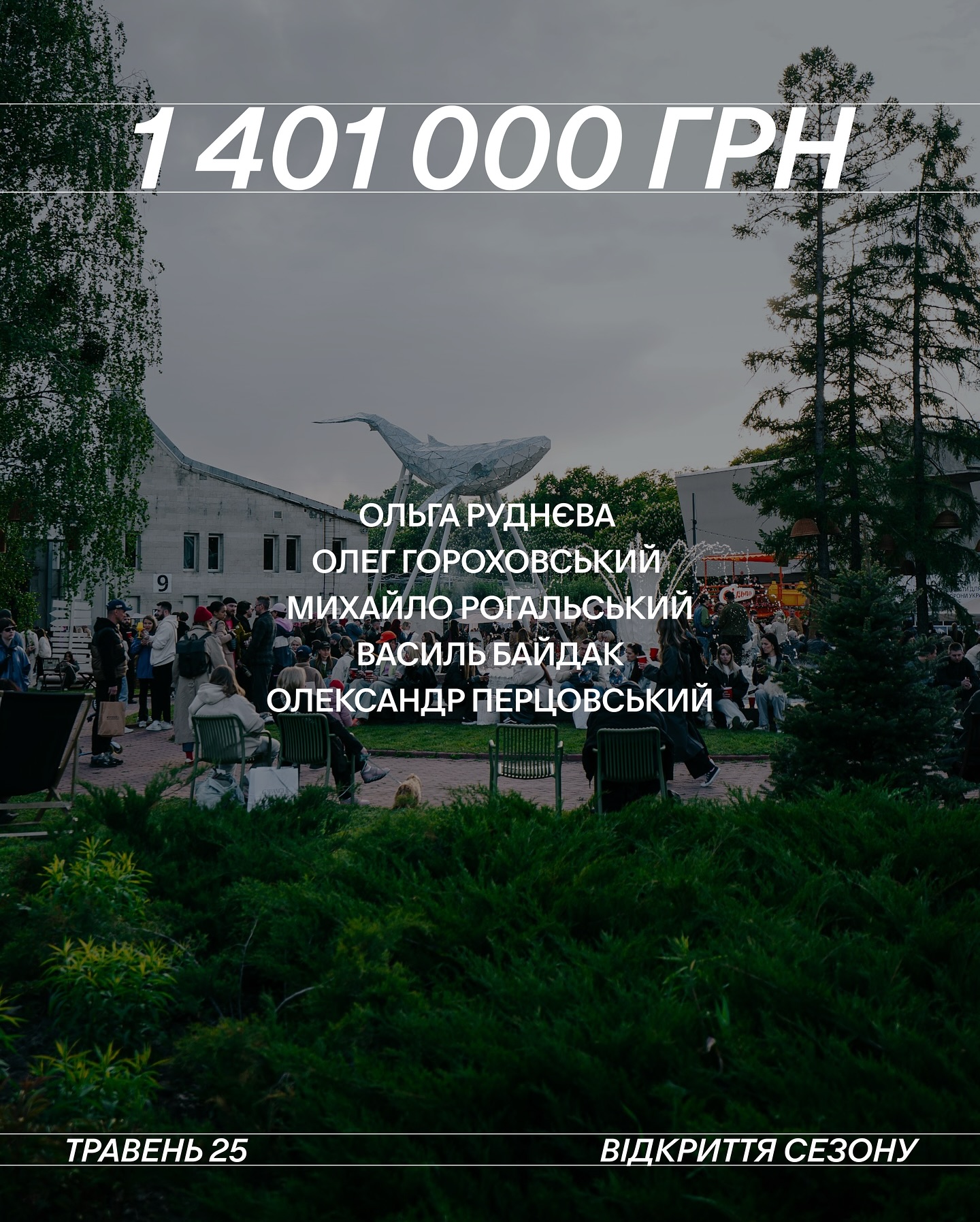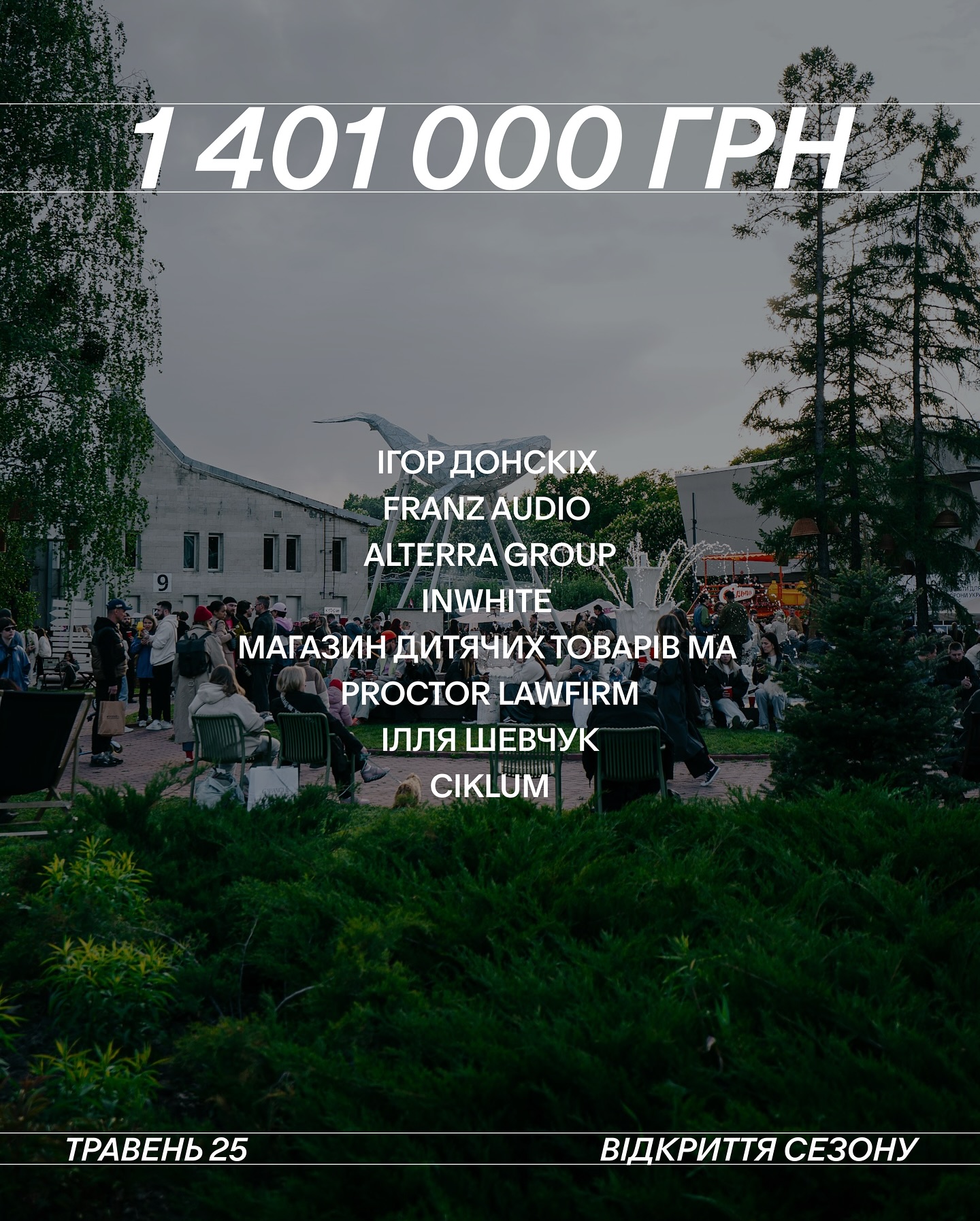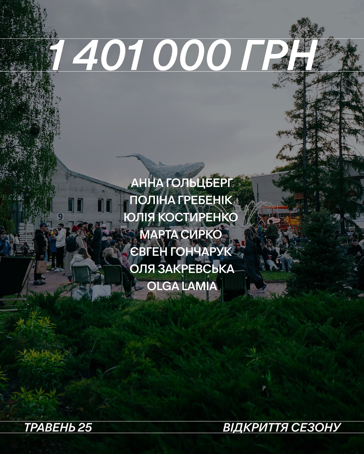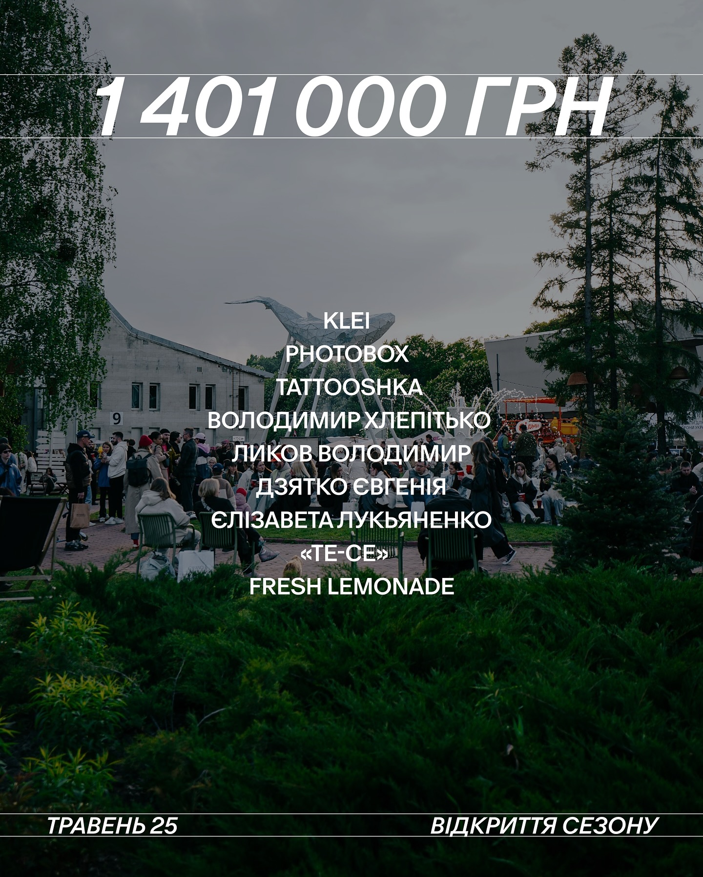 Під час відкриття нового сезону на ВДНГ команда Куражу зібрала 1 401 000 грн на благодійність — кошти вдалося акумулювати завдяки підтримці партнерів, митців, українських брендів і відвідувачів. Рекордну суму — 457 тис. грн — передав Monobank із продажу мерчу.