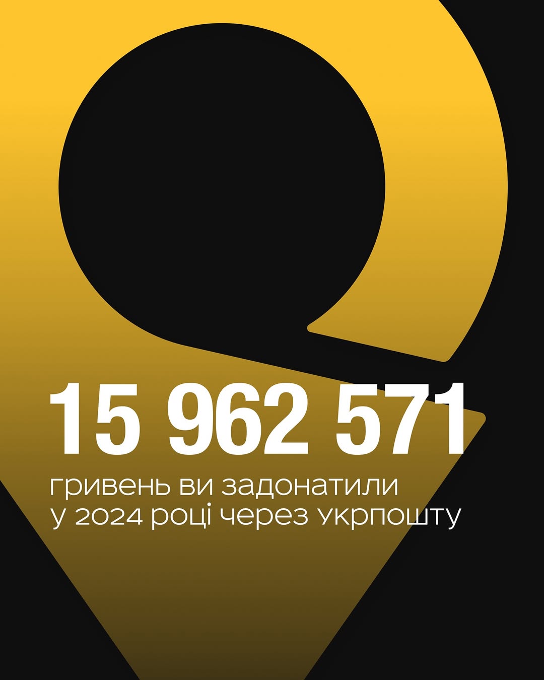 У 2024 році завдяки благодійним ініціативам Укрпошти українці зібрали понад 15,9 млн грн — кошти з продажу марок, донатів на сайті та при оформленні відправлень були спрямовані на підтримку Сил оборони, облаштування укриттів у школах, допомогу дітям, травмованим війною і підтримку притулків для тварин; також завершено масштабний проєкт — закупівлю машини для розмінування ДСНС за понад 18 млн грн, зібраних від марки «Пес Патрон».