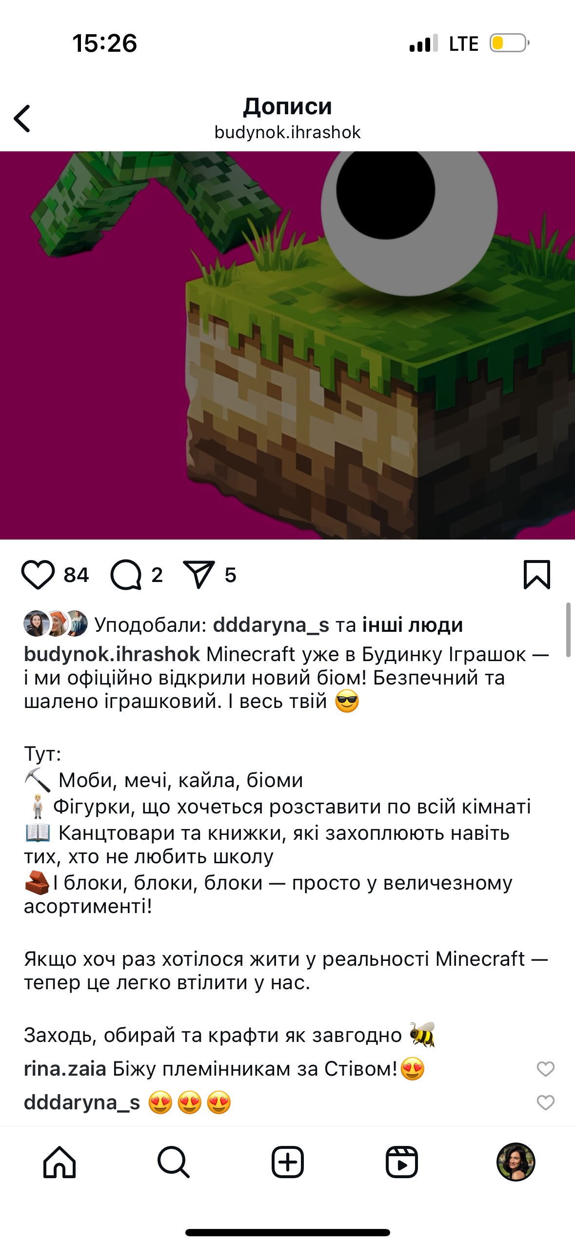 “Minecraft — це окремий світ зі своїми правилами, образами та мовою. Але для тих, хто не в темі, усе це виглядає як просто кубики й пікселі. Якщо не розуміти, що за цим стоїть — як поводяться персонажі, про що вони говорять, від чого саме фанатіють діти — можна легко зробити щось поверхневе, що аудиторія просто проігнорує. Ми від самого початку вирішили не використовувати згадку про гру напряму, а навпаки занурилися у цей всесвіт – це наш підхід до роботи з продуктом. Так ми зрозуміли, які саме візуальні елементи та фрази працюють, чим живе ця спільнота. І вже на основі цього створили креативи, які “зчитуються” миттєво, але при цьому не копіюють гру буквально. Потрібно не просто використати тренд, потрібно у нього зануритись”, – коментує СМО Будинку Іграшок Дарина Скалун.