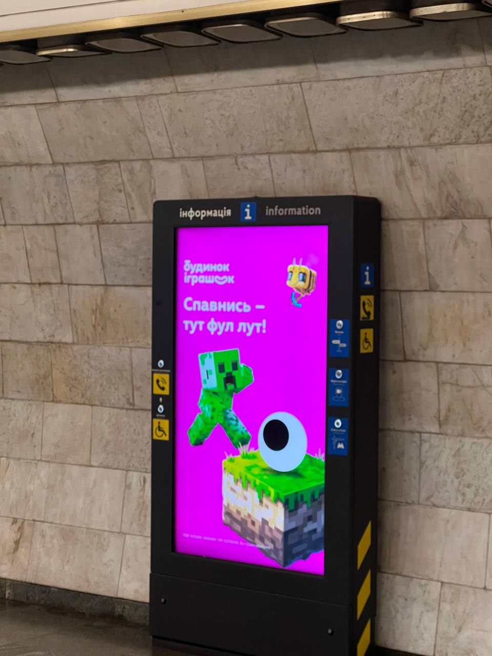 Кампанія охоплювала різні класичні канали: зовнішні цифрові борди, рекламу в кінотеатрах, медійне просування. Втім, креативи адаптували під знайомий користувачам світ Minecraft. Ритейлер свідомо не згадував Minecraft буквально, але взяв його візуальну мову: стилістику, кольори, форму блоків. А традиційне око на аватарці Instagram-сторінки Будинку Іграшок на цей період отримало піксельне оновлення у стилі гри.