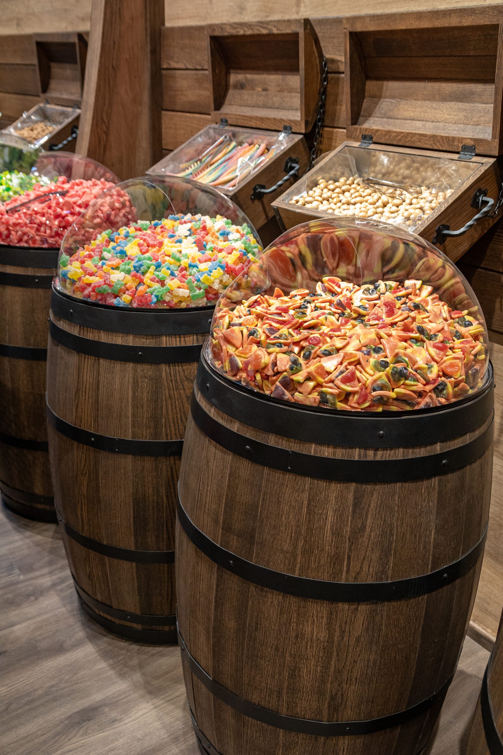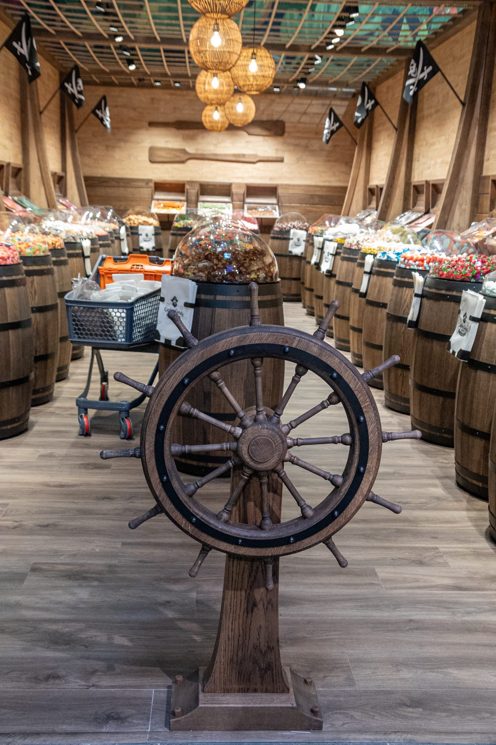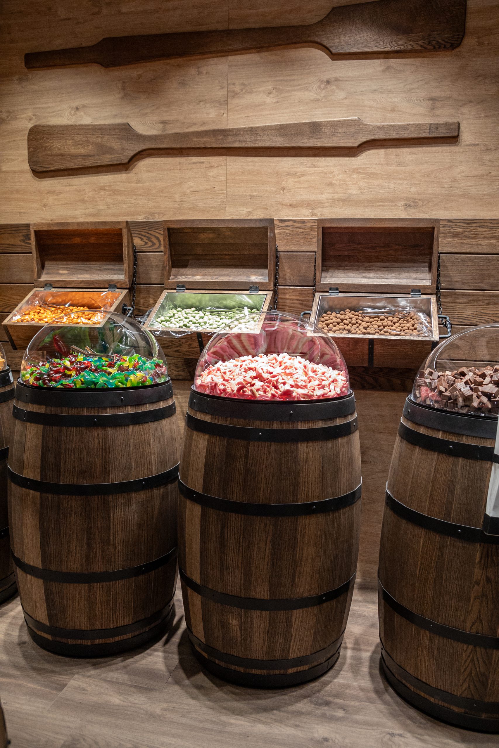 Дизайн магазину реалізувала команда дослідно-конструкторського бюро «Майстерні Чудес». Простір оформили у впізнаваній піратській стилістиці Captain Candy: дерев’яні бочки, ретро-декор, приглушене світло. А головний скарб — 52 види цукерок на вагу, які можна міксувати на власний смак: мармеладні, маршмеллоу, з горішками, праліне чи локрицею.