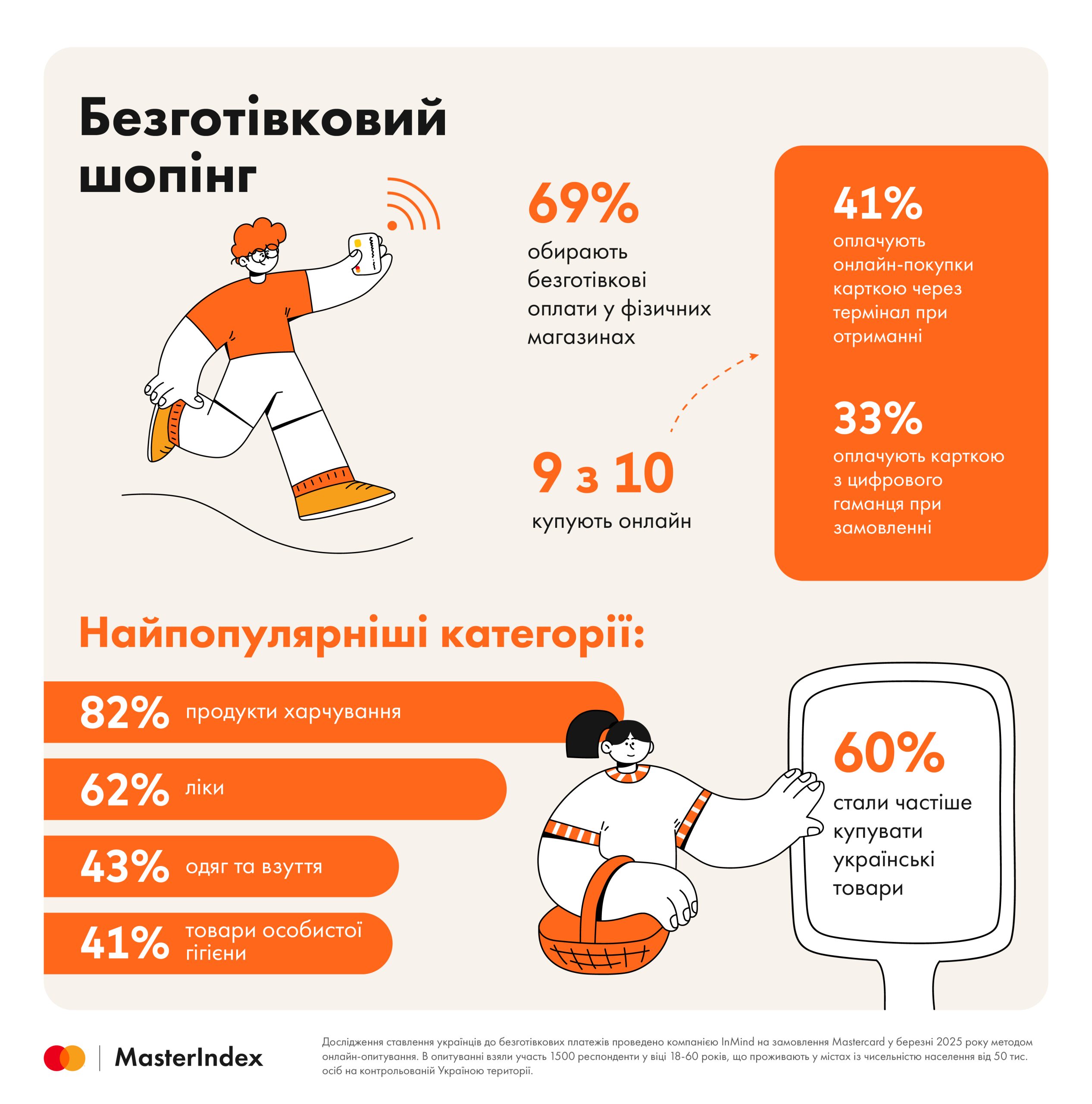 Кількісне дослідження ставлення українців до безготівкових платежів проведено компанією InMind на замовлення Mastercard у березні 2025 року методом онлайн-опитування. В опитуванні взяли участь 1500 респонденти, картодержателів у віці 18-60 років, що проживають у містах із чисельністю населення від 50 тис. осіб на контрольованій Україною території.