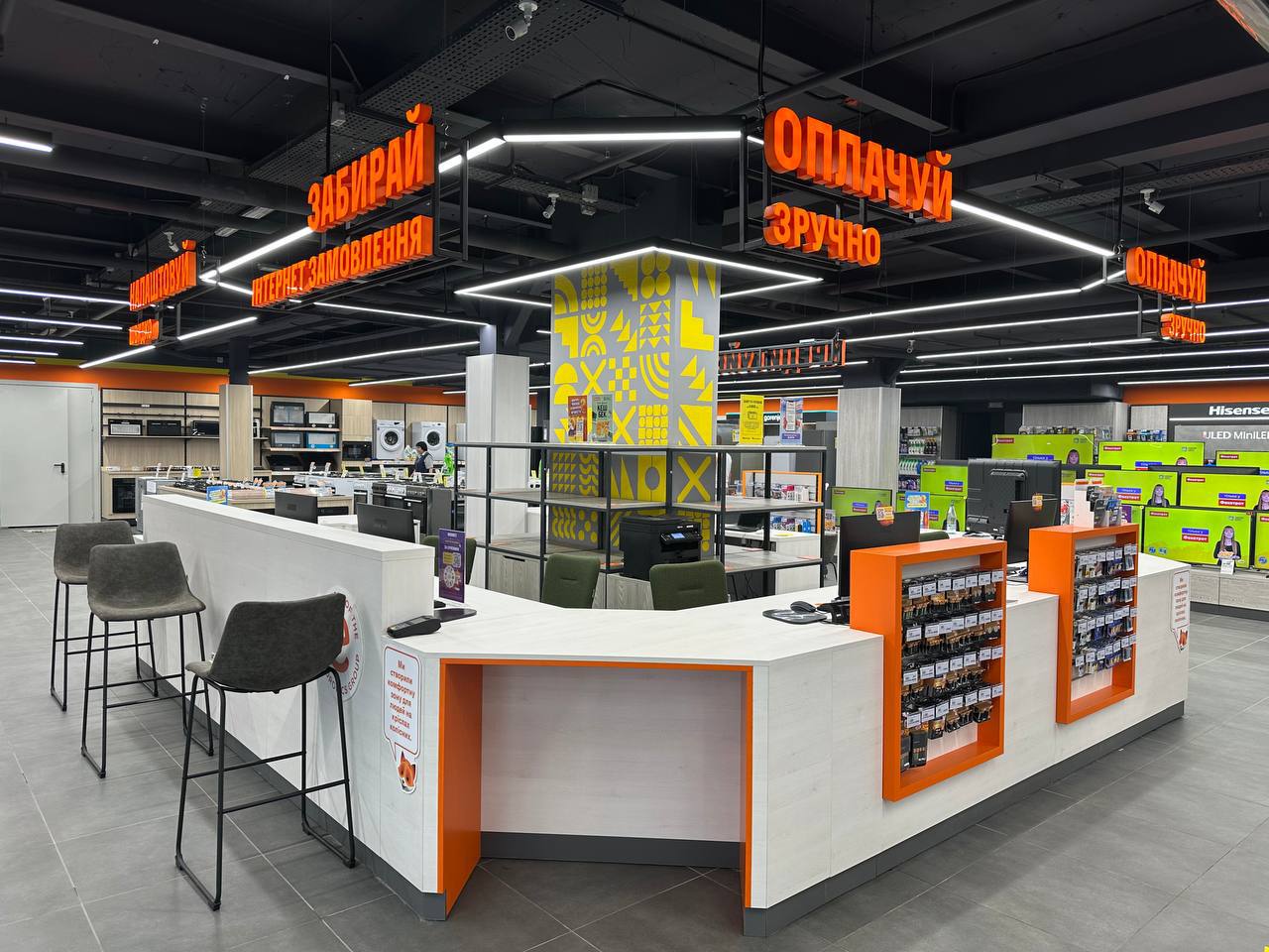 Просторе приміщення з широкими проходами, облаштований сервісний хаб нового формату і сервіс обслуговування жестовою мовою забезпечують комфортні умови для всіх покупців. У дизайні використано вже впізнавані автентичні елементи вищиванки, стилістично поєднаної з айдентикою бренду.